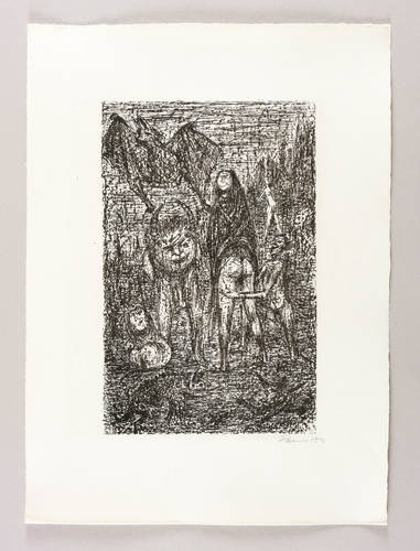 Gredig 63. – Rechts unten in Bleistift signiert und datiert: ″FCremer 1956″. – Aus der lithografierten Folge zu Johann Wolfgang von Goethe ″Faust″. – Sehr guter Zustand.