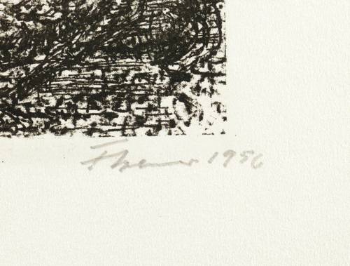 1956. Lithografie / Kreide- & Federlithografie, in Schwarz, auf leichtem hellchamois Velin. – Originale Künstlergrafik, von Fritz Cremer. – Auflage 50 Exemplare. – 29,6 x 19,0 cm (Darstellung / Druckbild), 45 x 33 cm (Blatt).