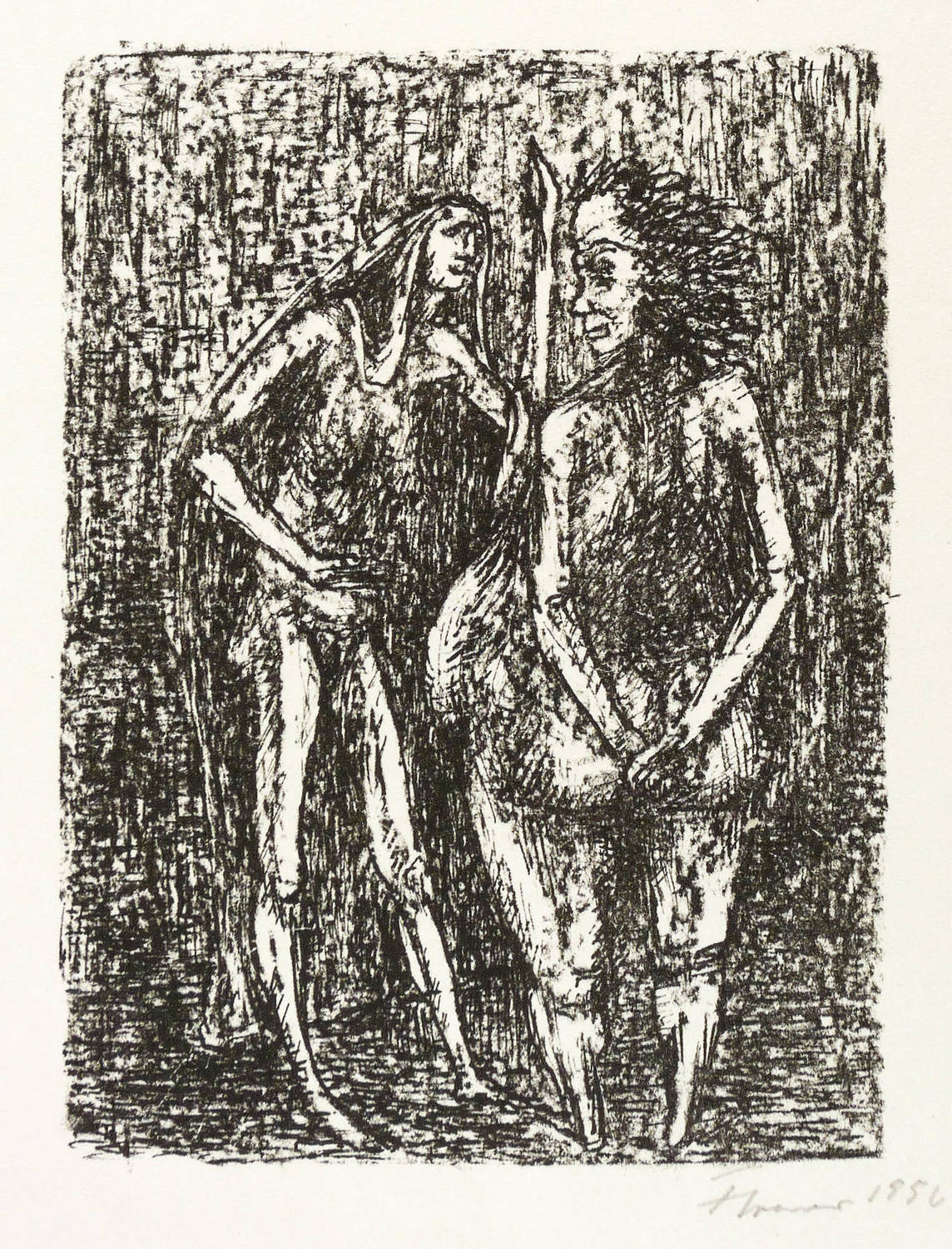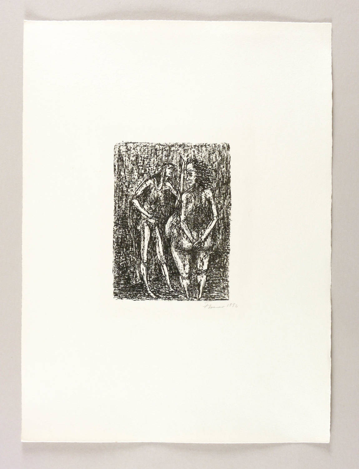 1956. Lithografie / Kreide- & Federlithografie, in Schwarz, auf leichtem hellchamois Velin. – Originale Künstlergrafik, von Fritz Cremer. – Auflage 50 Exemplare. – 16,6 x 12,1 cm (Darstellung / Druckbild), 45 x 33 cm (Blatt).