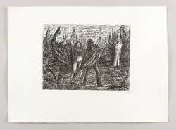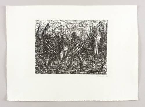 1956. Lithografie / Pinsel-, Kreide- & Federlithografie, in Schwarz, auf leichtem hellchamois Velin. – Originale Künstlergrafik, von Fritz Cremer. – Auflage 50 Exemplare. – 18,2 x 24,2 cm (Darstellung / Druckbild), 33 x 44 cm (Blatt).