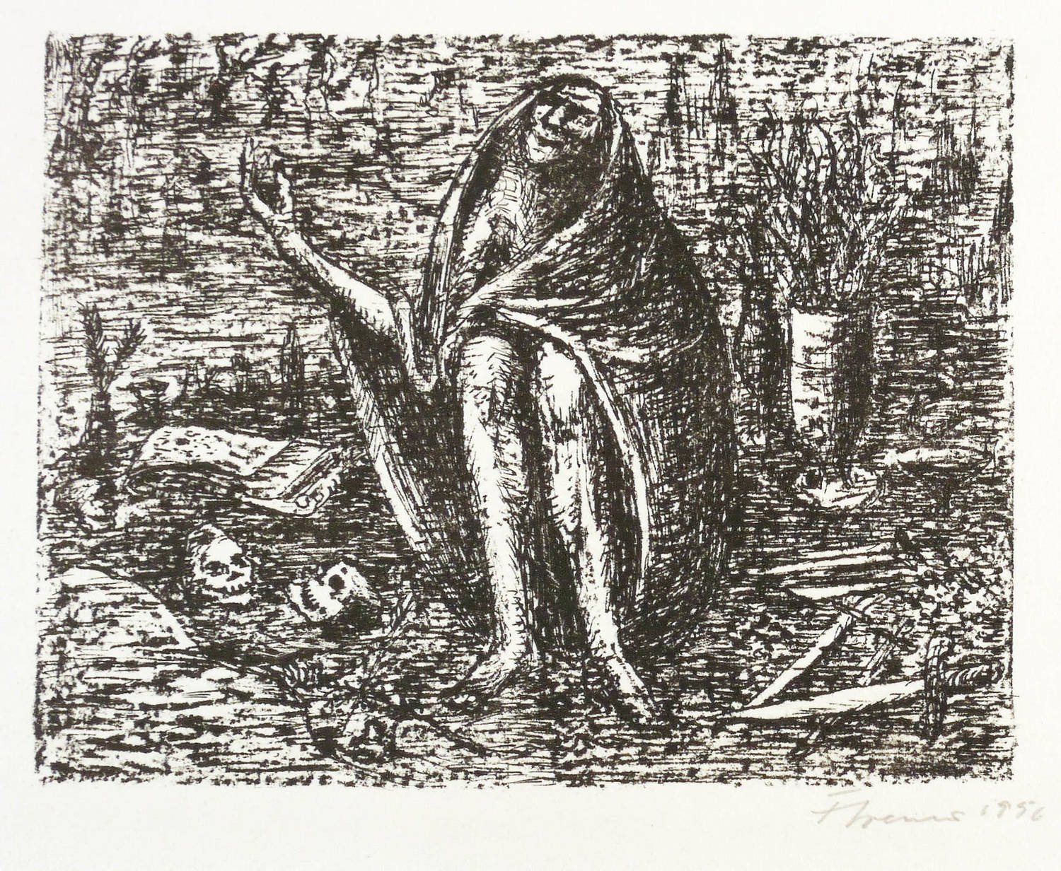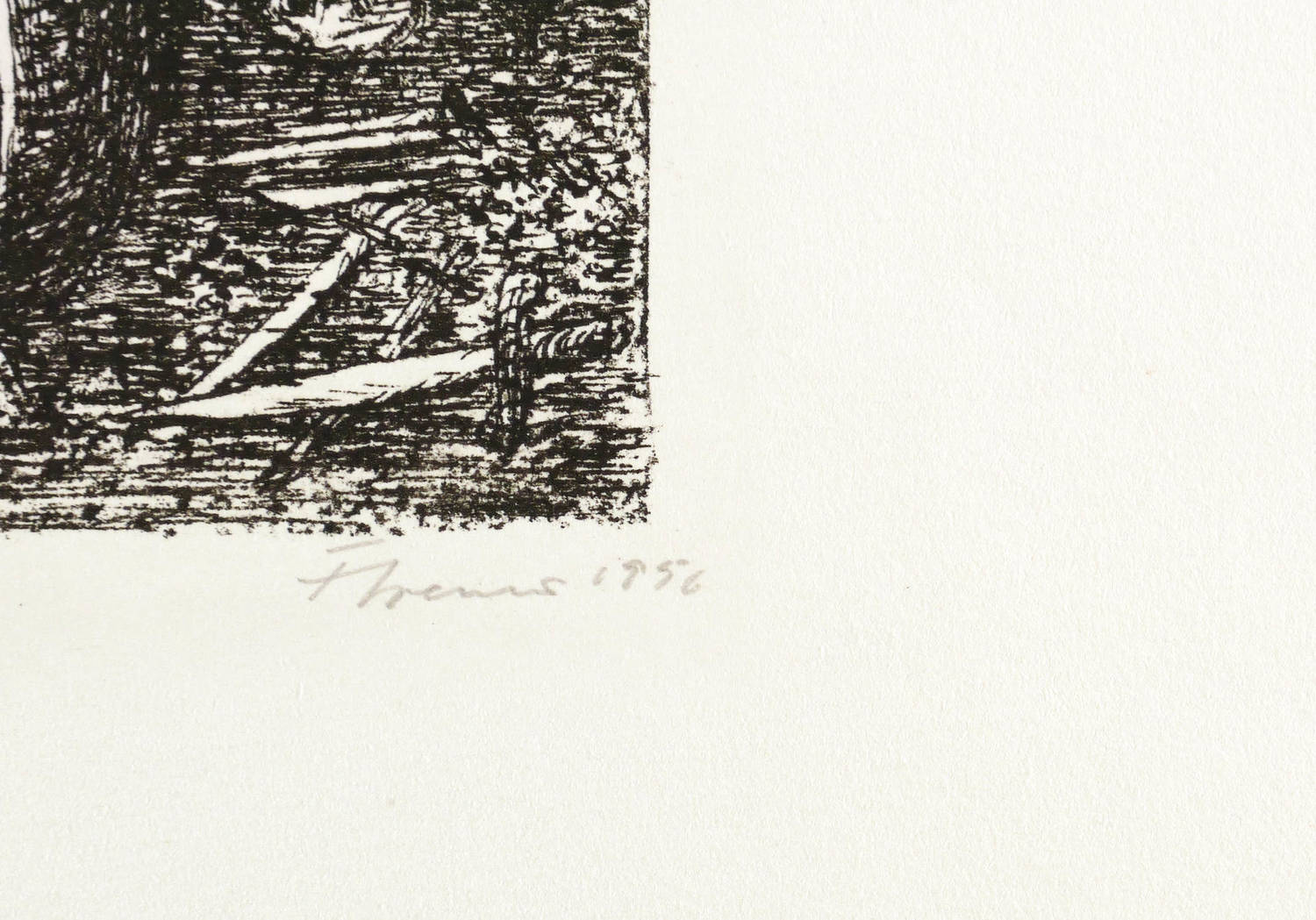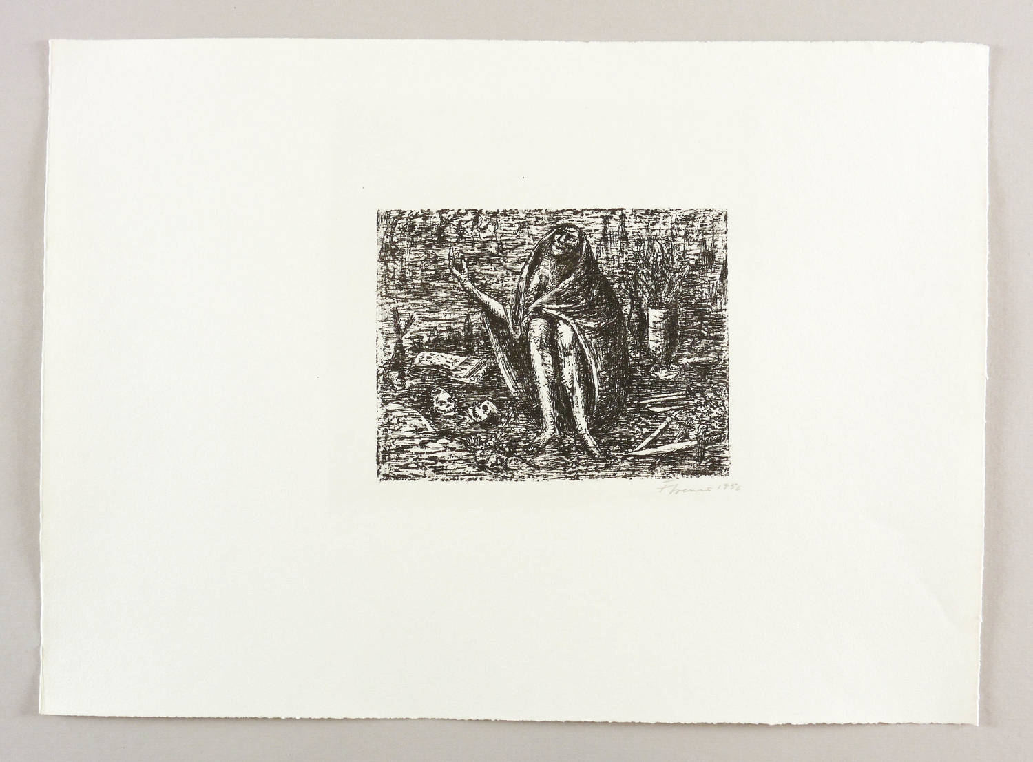 1956. Lithografie / Kreide- & Federlithografie, in Schwarz, auf leichtem hellchamois Velin. – Originale Künstlergrafik, von Fritz Cremer. – Auflage 50 Exemplare. – 12,8 x 16,5 cm (Darstellung / Druckbild), 32 x 44 cm (Blatt).