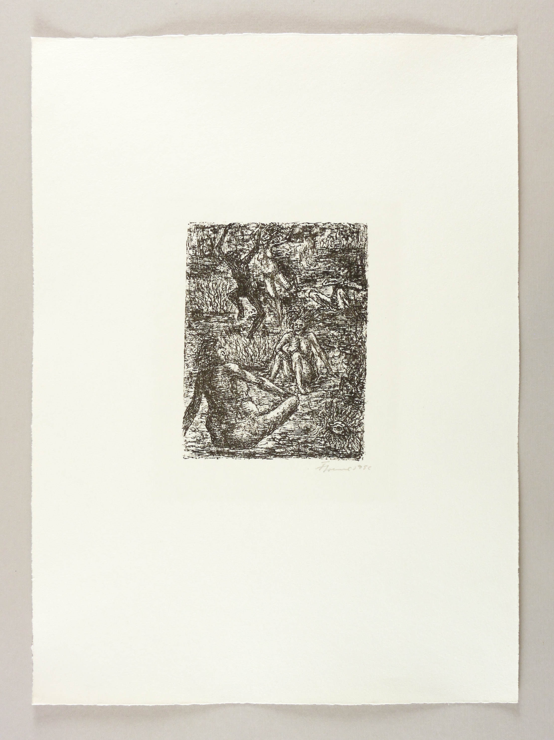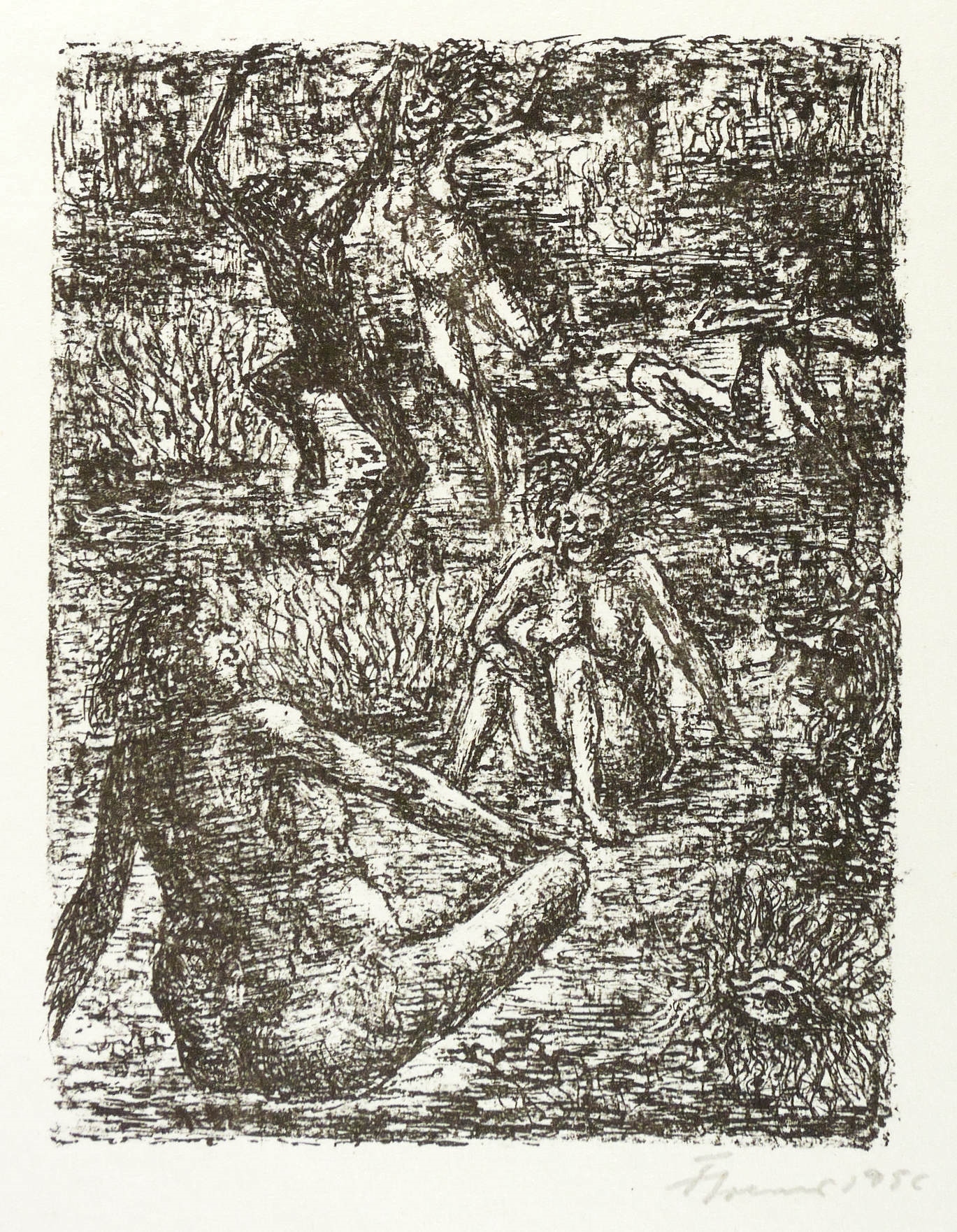 1956. Lithografie / Pinsel-, Kreide- & Federlithografie, in Schwarz, auf leichtem hellchamois Velin. – Originale Künstlergrafik, von Fritz Cremer. – Auflage 50 Exemplare. – 15,6 x 12,0 cm (Darstellung / Druckbild), 44 x 32 cm (Blatt).