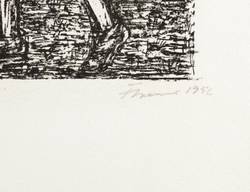 1956. Lithografie / Kreide- & Federlithografie, in Schwarz, auf leichtem hellchamois Velin. – Originale Künstlergrafik, von Fritz Cremer. – Auflage 50 Exemplare. – 21,5 x 20,0 cm (Darstellung / Druckbild), 45 x 33 cm (Blatt).