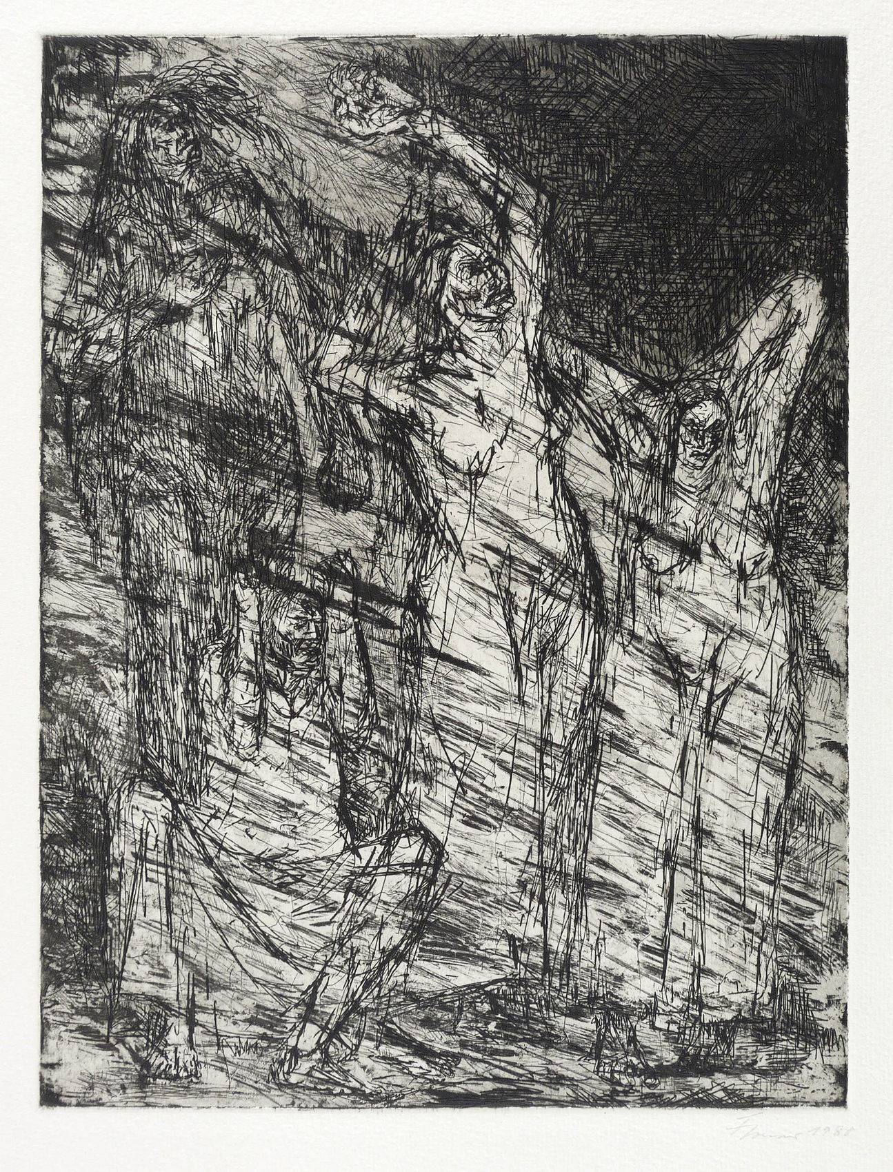 1980. Radierung / Aquatinta & Kaltnadel, in Schwarz, auf hellchamois Weißenborn. – Originale Künstlergrafik, von Fritz Cremer. – Künstlerexemplar (e.a.). – 32,2 x 24,3 cm (Darstellung / Platte), 51 x 38 cm (Blatt).