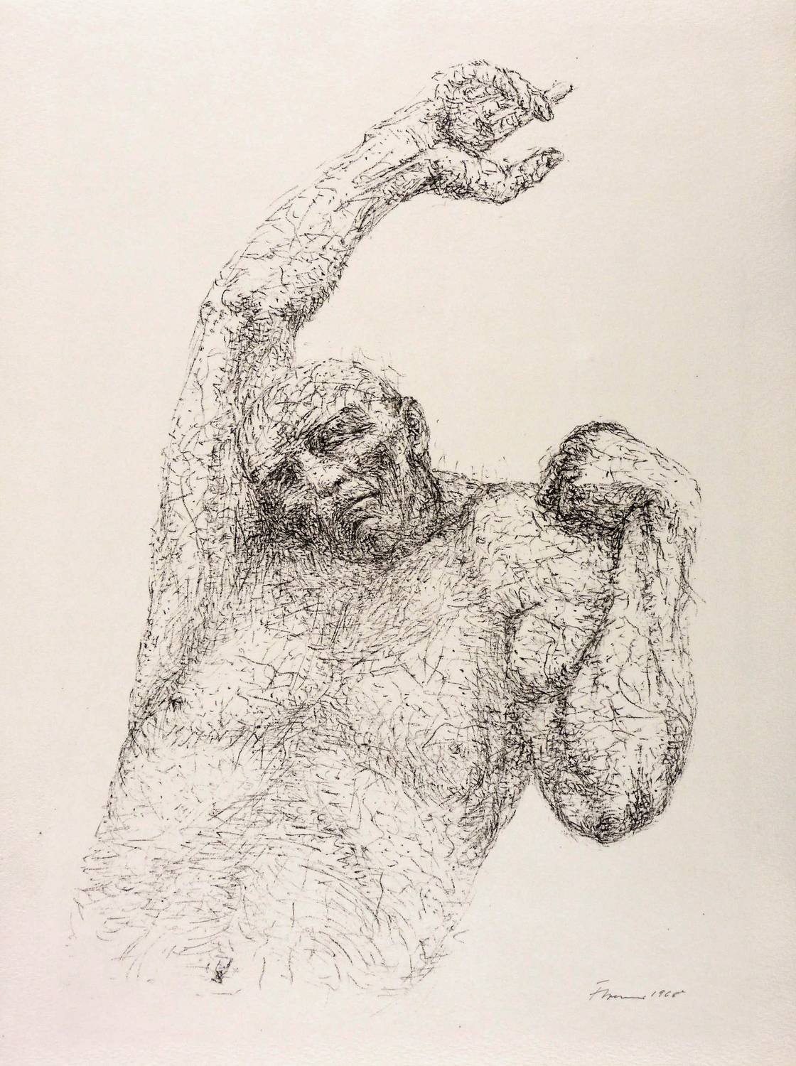 1968. Lithografie / Feder- & Kreidelithografie, in Schwarz, auf hellem Weißenborn. – Originale Künstlergrafik, von Fritz Cremer. – Auflage Exemplar Nr. 42/82. – 44,5 x 29,6 cm (Darstellung / Druckbild), 51 x 38 cm (Blatt).