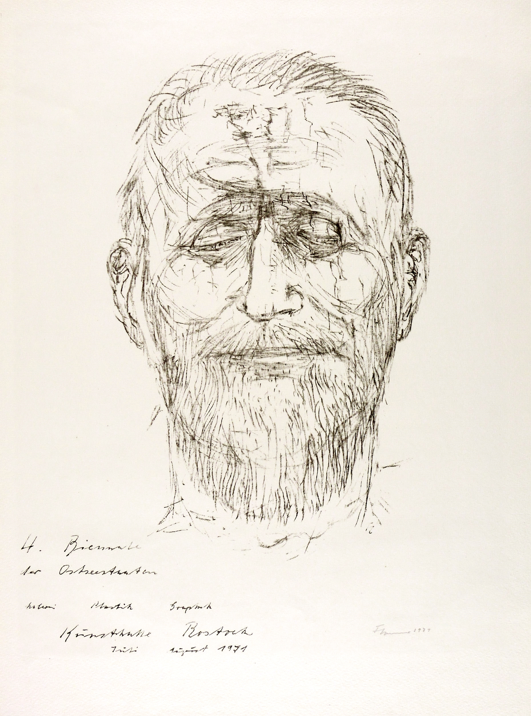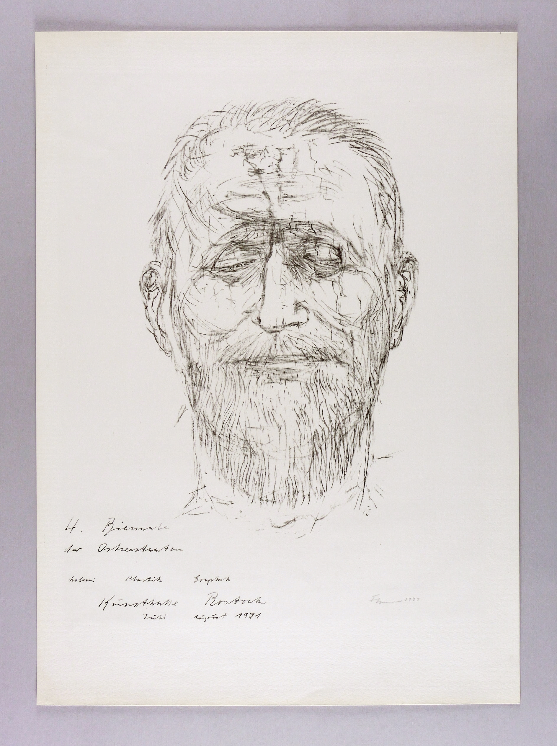 Gredig 242. – Rechts unten in Bleistift signiert und datiert: ″FCremer 1971″. Im Stein Monogramm FC und Inschrift. – Originalgrafisches Plakat zur 4. Biennale der Ostseestaaten in der Kunsthalle Rostock Juli- August 1971. – Sehr guter Zustand.