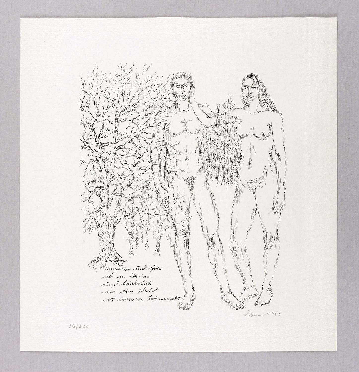 1983. Lithografie / Federlithografie, in Schwarz, auf hartem hellchamois Weißenborn. – Originale Künstlergrafik, von Fritz Cremer. – Auflage Exemplar Nr. 36/200. – 27,5 x 22,5 cm (Darstellung / Druckbild), 37 x 35 cm (Blatt).