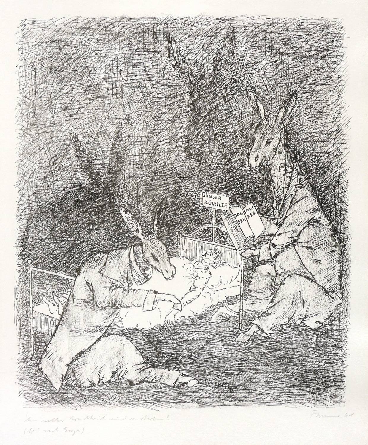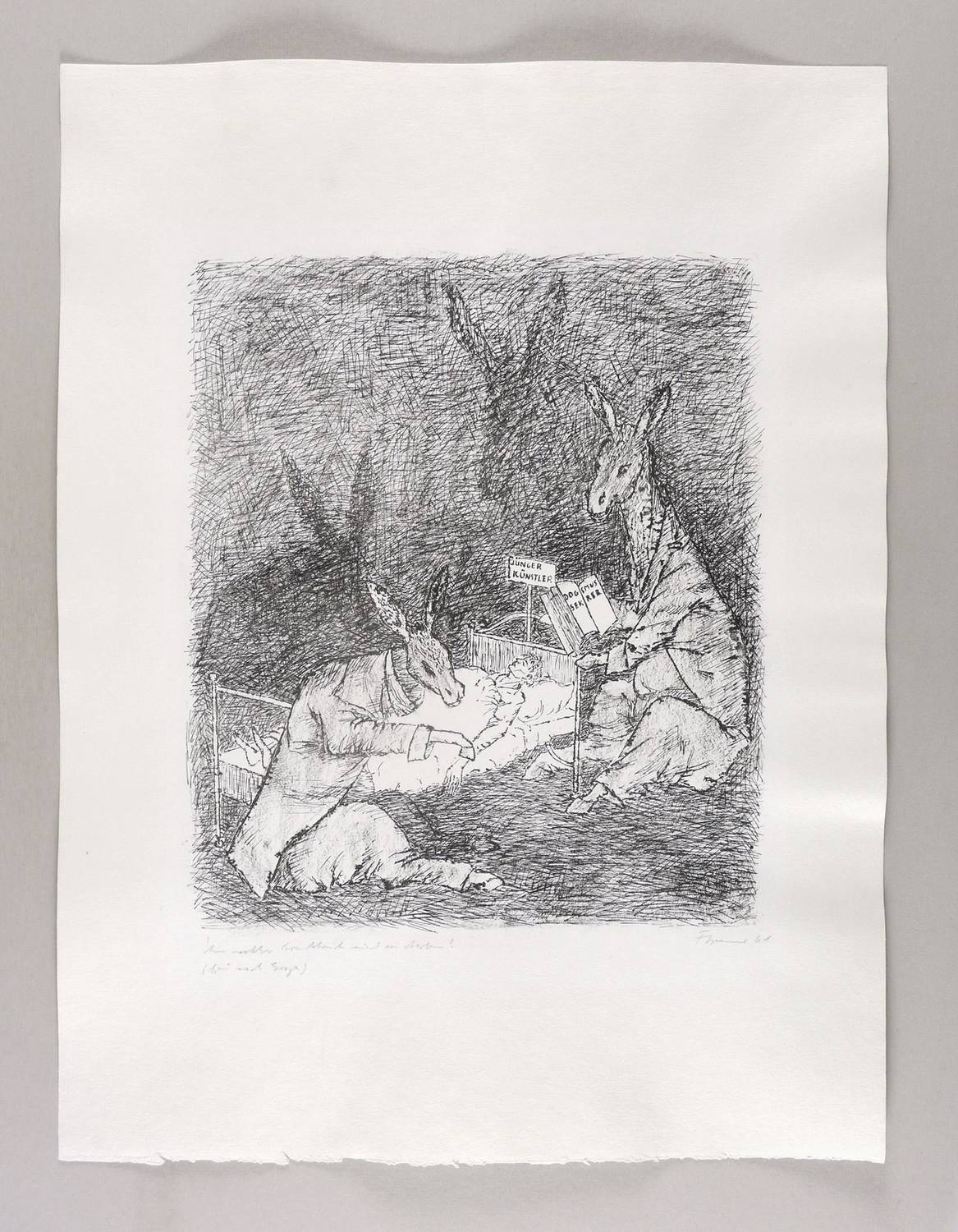 Gredig 144. – Rechts unten in Bleistift signiert und datiert: ″FCremer 61″. Links Titel: ″An welcher Krankheit wird er sterben? (frei nach Goya)″. – Sehr guter Zustand.