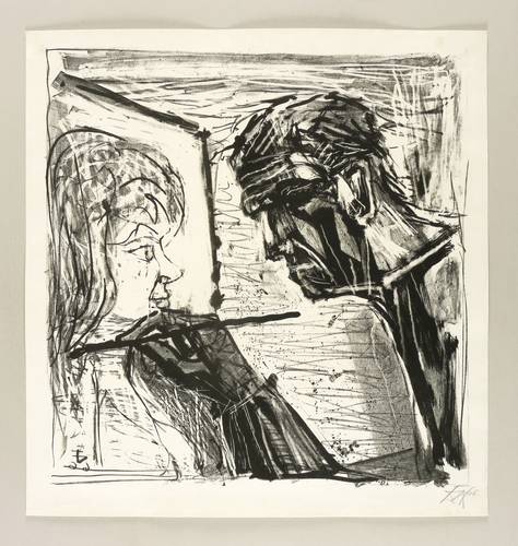 1966. Lithografie / Kreide- & Pinsellithografie, in Schwarz, auf hellchamois Velinkarton. – Originale Künstlergrafik, von Otto Dix. – Probedruck. – 53,5 x 51,5 cm (Darstellung / Stein), 60 x 57 cm (Blatt).