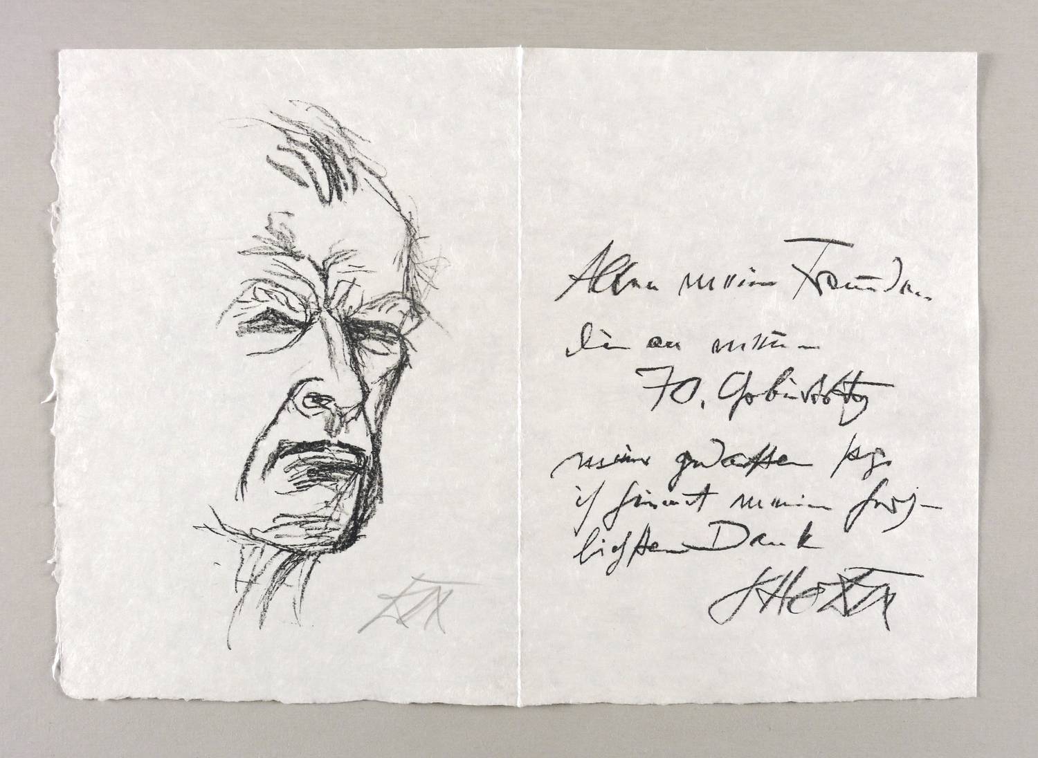 Karsch 288. – Rechts unten in Bleistift signiert: ″Dix″. – Klappkarte zur Danksagung zum 70. Geburtstag. – Sehr guter Zustand.