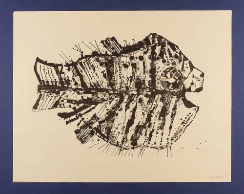 1981. Lithografie / Pinsellithografie, in Schwarz, auf braungrau getöntem Maschinenbütten. – Originale Künstlergrafik, von Heinz Drache. – 35,0 x 50,0 cm (Darstellung), 49,5 x 63,0 cm (Blatt).