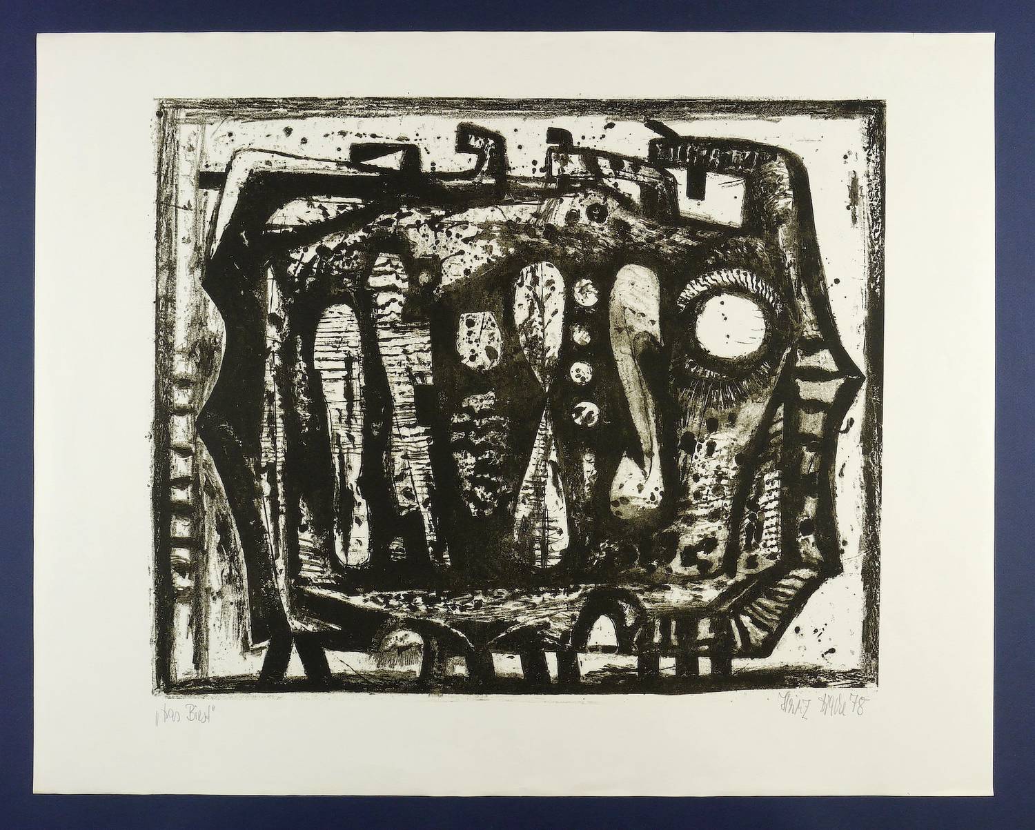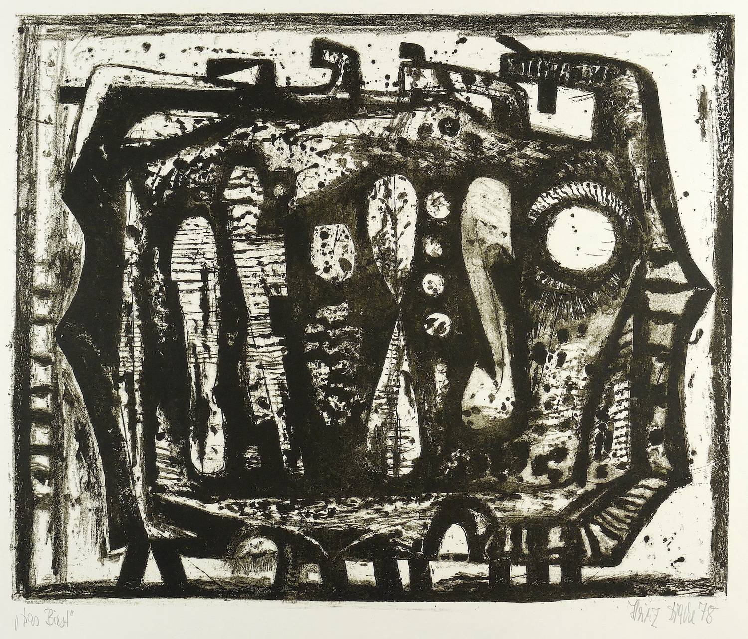 1978. Lithografie / Kreide- & Pinsellithografie, in Schwarz, auf gelblichem Velin. – Originale Künstlergrafik, von Heinz Drache. – 47,5 x 57,5 cm (Darstellung / Druckbild), 61 x 76 cm (Blatt).