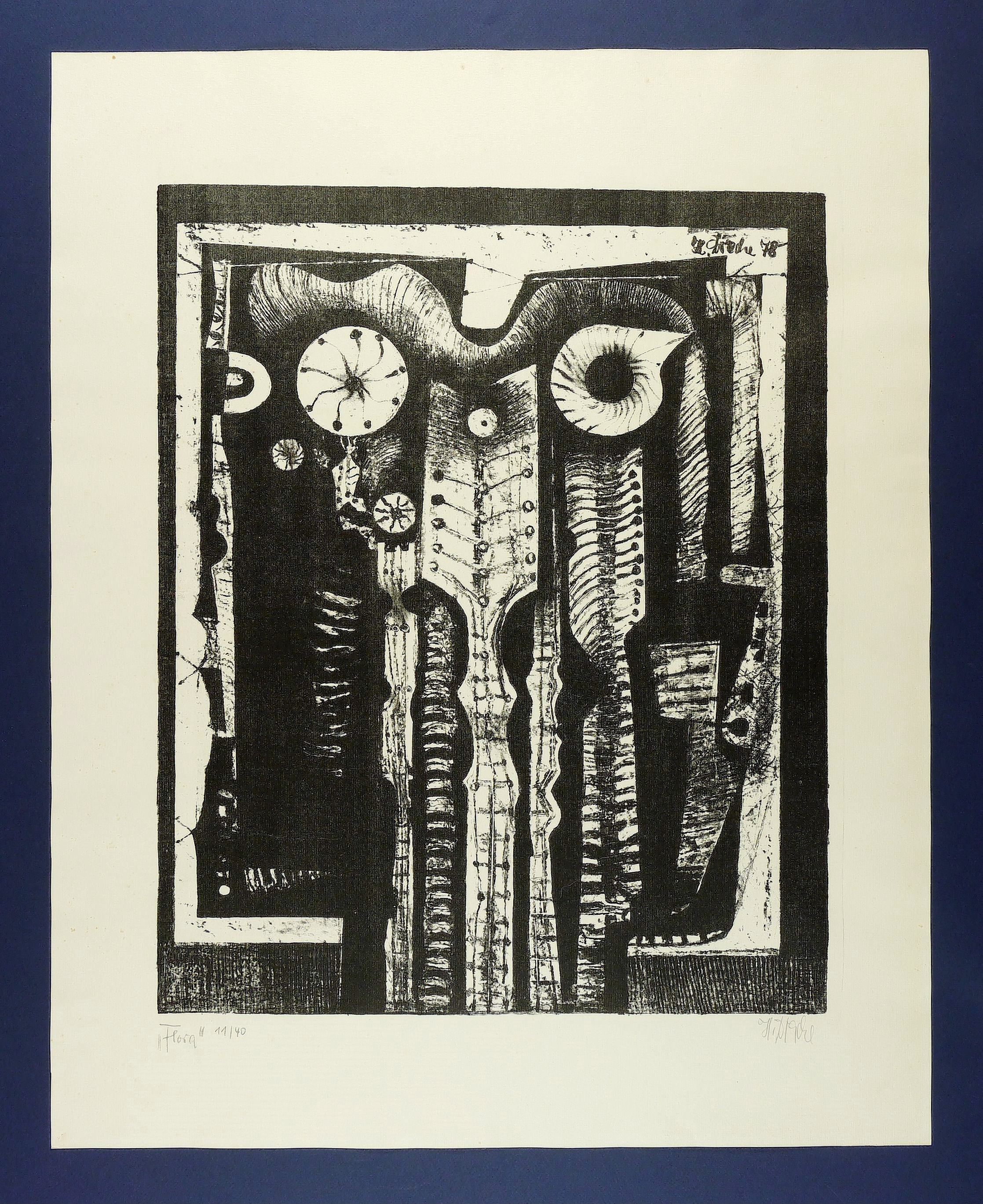 Um 1978. Lithografie / Kreide- & Pinsellithografie, in Schwarz, auf Büttenpapier. – Originale Künstlergrafik, von Heinz Drache. – Auflage Exemplar Nr. 11/40. – 57,0 x 46,0 cm (Darstellung), 76 x 61 cm (Blatt).