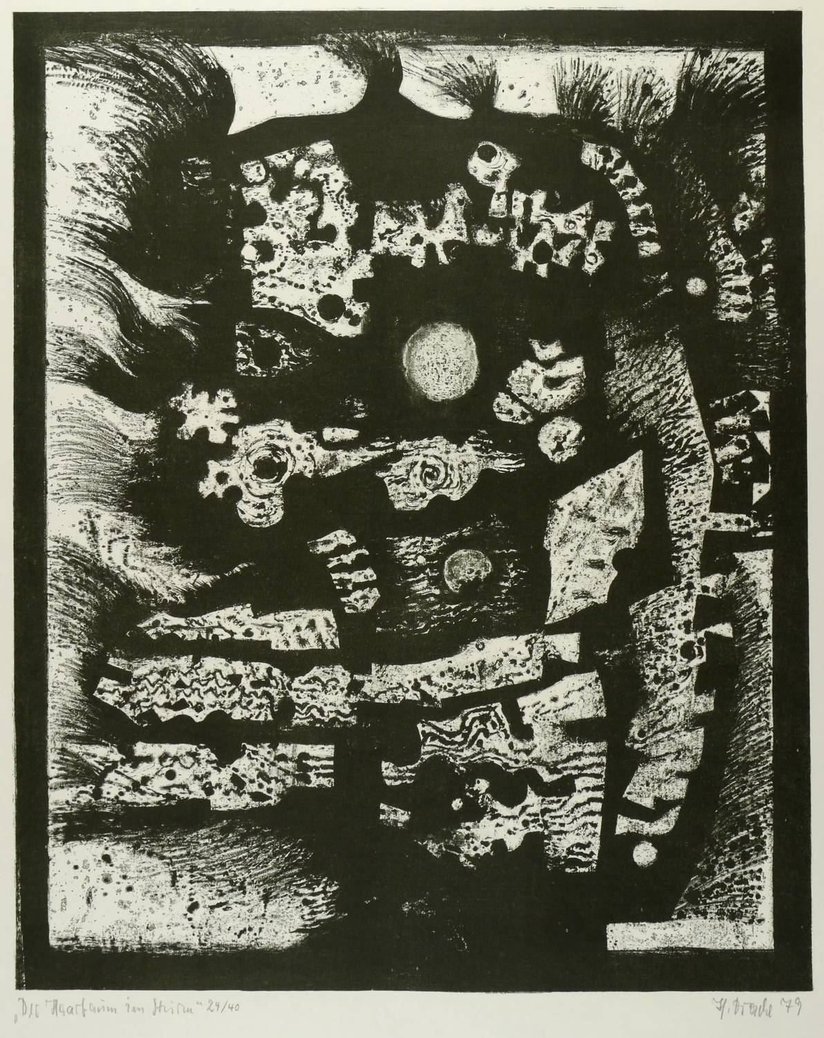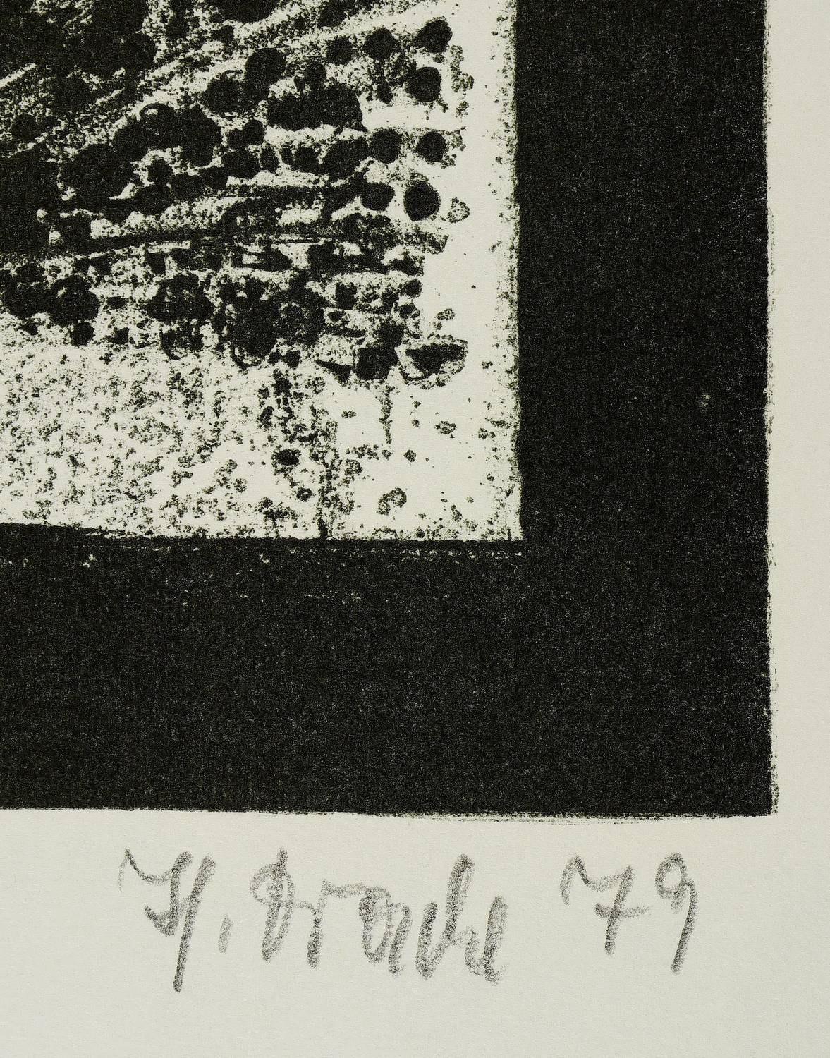 1979. Lithografie / Kreide- & Pinsellithografie, in Schwarz, auf gelblichem Velin. – Originale Künstlergrafik, von Heinz Drache. – Auflage Exemplar Nr. 24/40. – 58,0 x 47,0 cm (Darstellung / Druckbild), 79 x 62 cm (Blatt).
