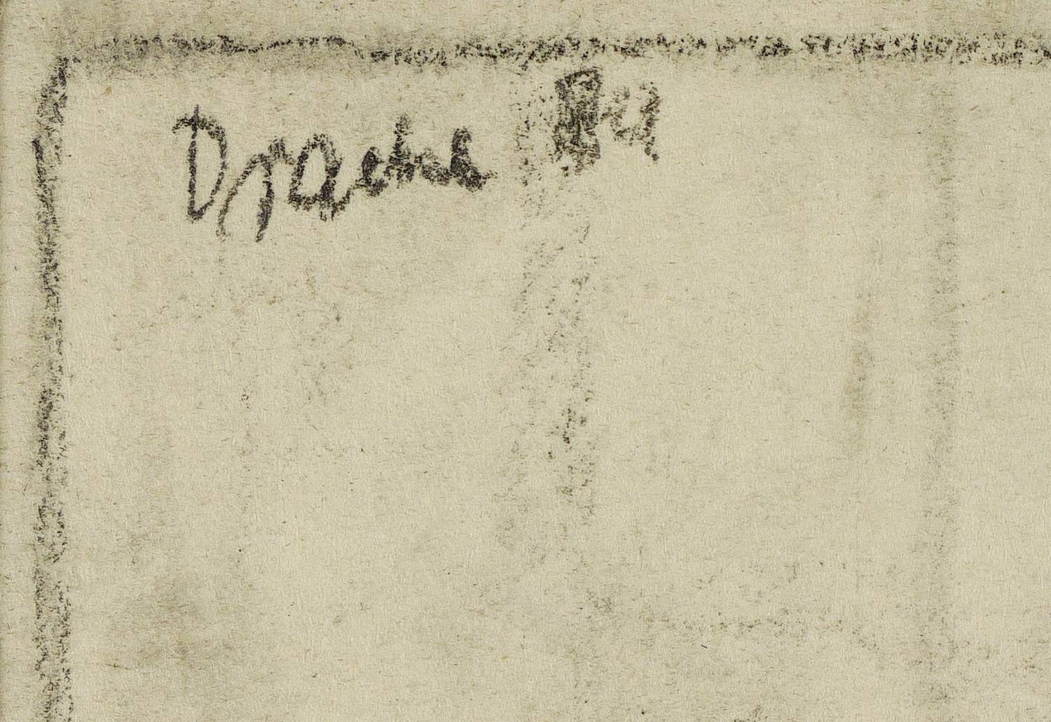 1984. Zeichnung / Graphitzeichnung, auf hellgelbem Velin. – Originale Künstlergrafik, von Heinz Drache. – Unikat. – 12,5 x 17,0 cm (Darstellung), 16,5 x 18,5 cm (Blatt).
