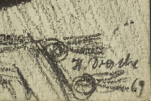 Rechts unten signiert und datiert. – Stärker fingerspurig und etwas berieben. Reißzwecklöchlein. Noch gut erhalten.