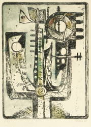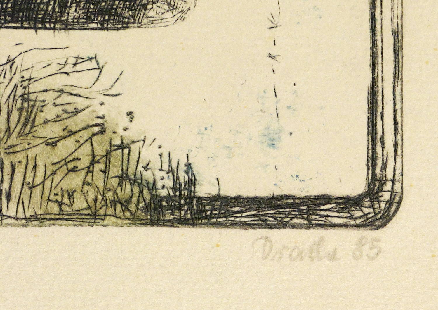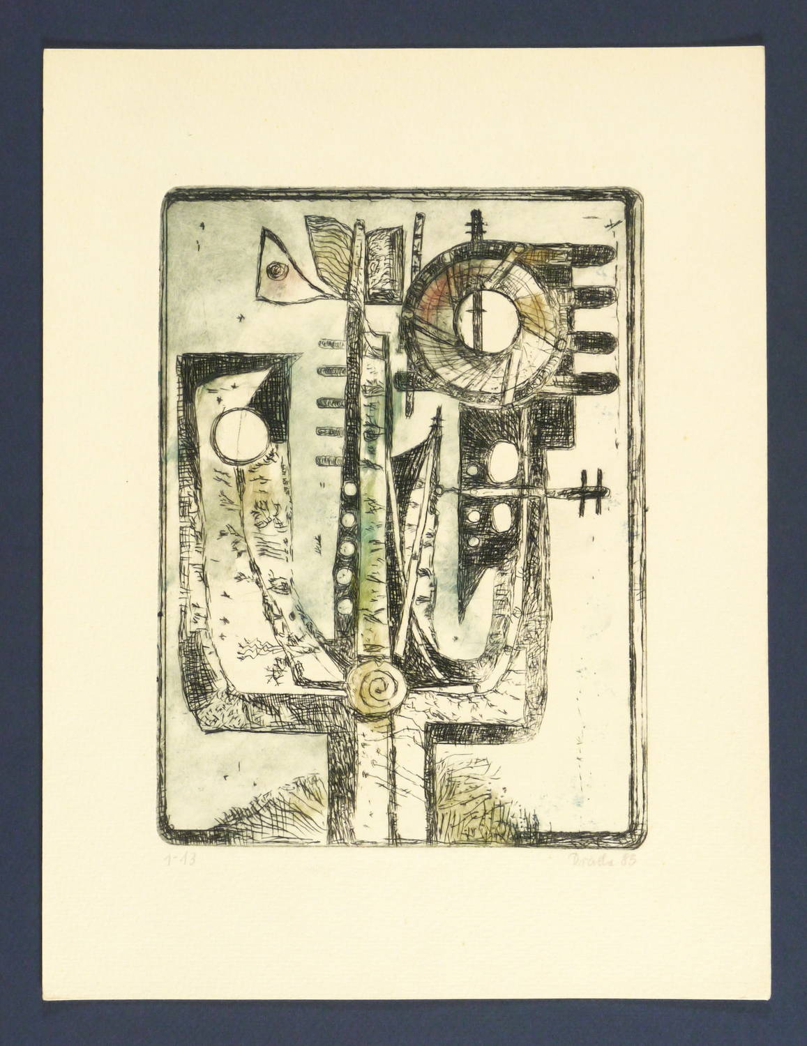 1985. Farbradierung / Strichätzung, in 3 Farben. – Originale Künstlergrafik, von Heinz Drache. – Auflage 13 Exemplare. – 21,7 x 16,0 cm (Darstellung / Platte), 31 x 24 cm (Blatt).