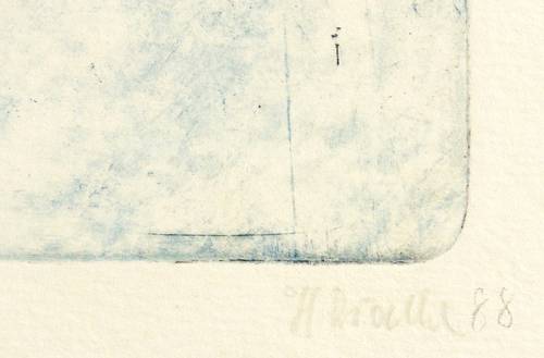 1988. Farbradierung / Strichätzung & Kaltnadel, in 3 Farben. – Originale Künstlergrafik, von Heinz Drache. – Auflage Exemplar Nr. 1/20. – 20,2 x 14,8 cm (Darstellung / Platte), 29 x 23 cm (Blatt).