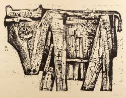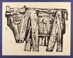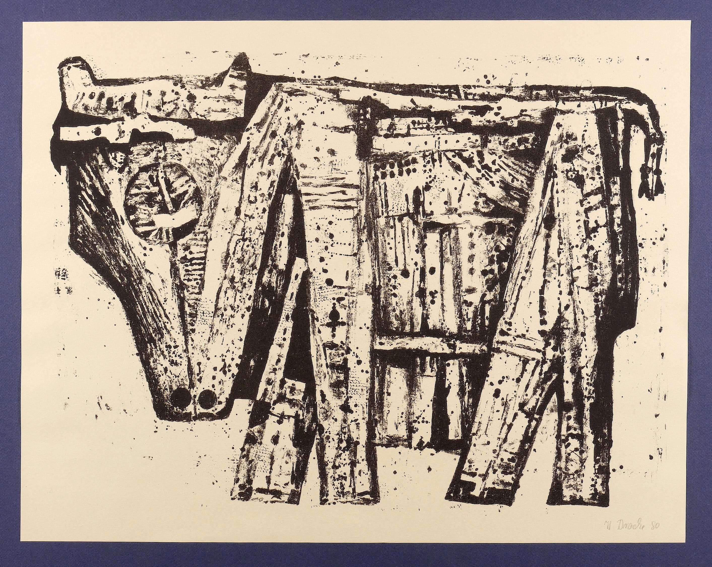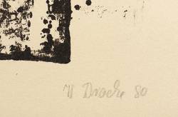 1980. Lithografie / Pinsellithografie, in Schwarz, auf hellbraun getöntem Maschinenbütten. – Originale Künstlergrafik, von Heinz Drache. – Unikat. – 42,5 x 58,5 cm (Darstellung), 49,5 x 63,0 cm (Blatt).