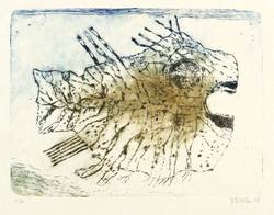 1988. Farbradierung / Strichätzung & Kaltnadel, in 3 Farben, auf hellgelbem Velinkarton. – Originale Künstlergrafik, von Heinz Drache. – Auflage 20 Exemplare. – 13,9 x 18,7 cm (Darstellung / Platte), 23,5 x 28,5 cm (Blatt).