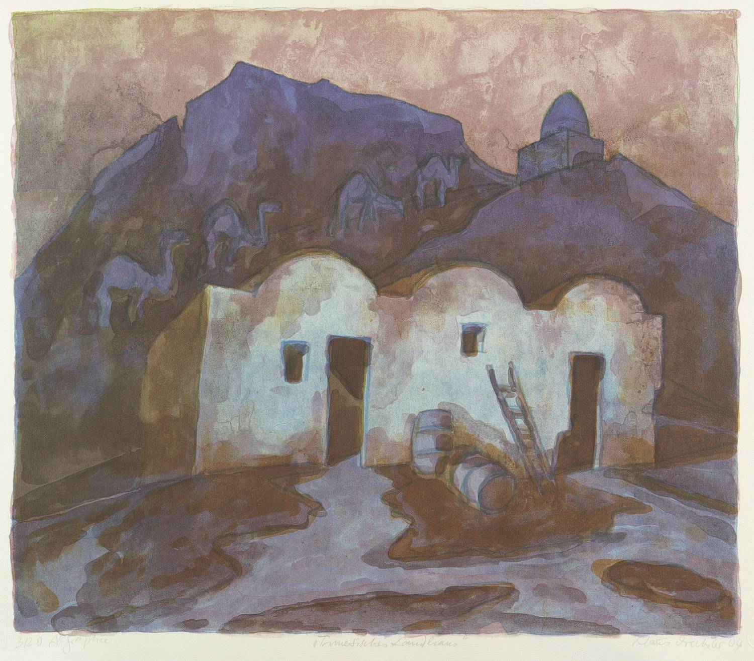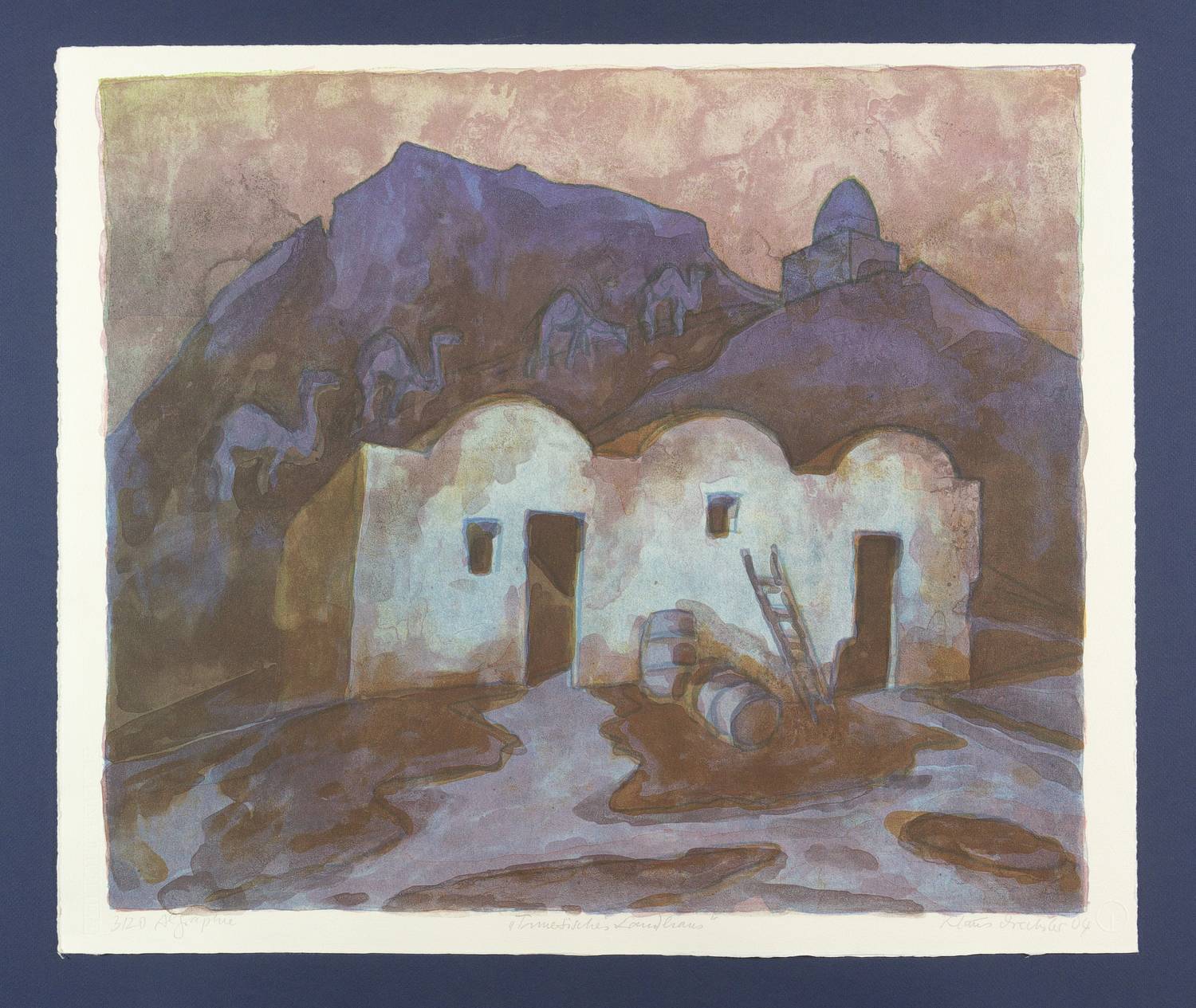 2004. Farbalgrafie / Pinselalgrafie, in 5 Farben, auf schwerem hellchamois Hahnemühle. – Originale Künstlergrafik, von Klaus Drechsler. – Auflage Exemplar Nr. 3/20. – 50,5 x 57,5 cm (Darstellung), 54 x 64 cm (Blatt).