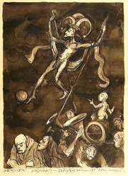 2006. Zeichnung / Federzeichnung, in Tusche laviert, auf hellorangem Maschinenbütten. – Originale Künstlergrafik, von Klaus Drechsler. – Unikat. – 50,0 x 36,0 cm (Darstellung), 54 x 43 cm (Blatt).