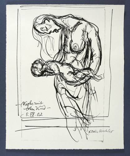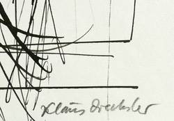 2002. Zeichnung / Federzeichnung, in schwarzer Tusche, auf hellgrauem Maschinenbütten. – Originale Künstlergrafik, von Klaus Drechsler. – Unikat. – 41,0 x 33,5 cm (Darstellung / Blatt).
