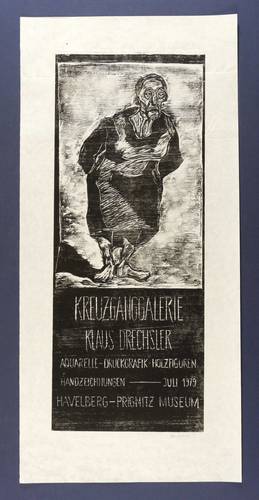 1979. Holzschnitt, in Schwarz, auf weißem Japanpapier. – Originales Künstlerplakat, von Klaus Drechsler. – 58,8 x 23,4 cm (Darstellung / Druckstock), 72,5 x 34 cm (Blatt).