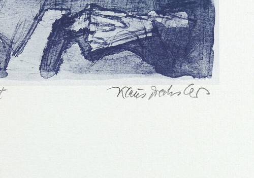 1997. Offsetlithografie / Feder- & Pinsellithografie, in Blau, auf kräftigem hellgrauem Maschinenbütten. – Originales Künstlerplakat, von Klaus Drechsler. – Auflage Exemplar Nr. 9/30. – 16,9 x 13,4 cm (Darstellung / Druckbild), 60 x 42 cm (Blatt).
