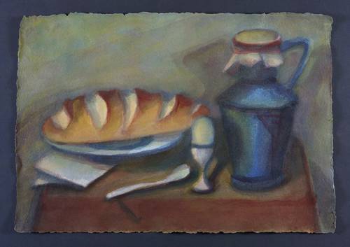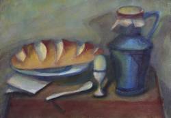 Drechsler, Klaus. – „Stillleben mit Weißbrot und blauer Kanne”.