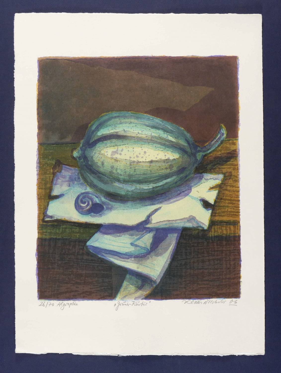 2006. Farbalgrafie / Pinselalgrafie, in 6 Farben, auf schwerem weißem Hahnemühle-Bütten. – Originale Künstlergrafik, von Klaus Drechsler. – Auflage Exemplar Nr. 26/70. – 38,8 x 32,2 cm (Darstellung), 54 x 40 cm (Blatt).
