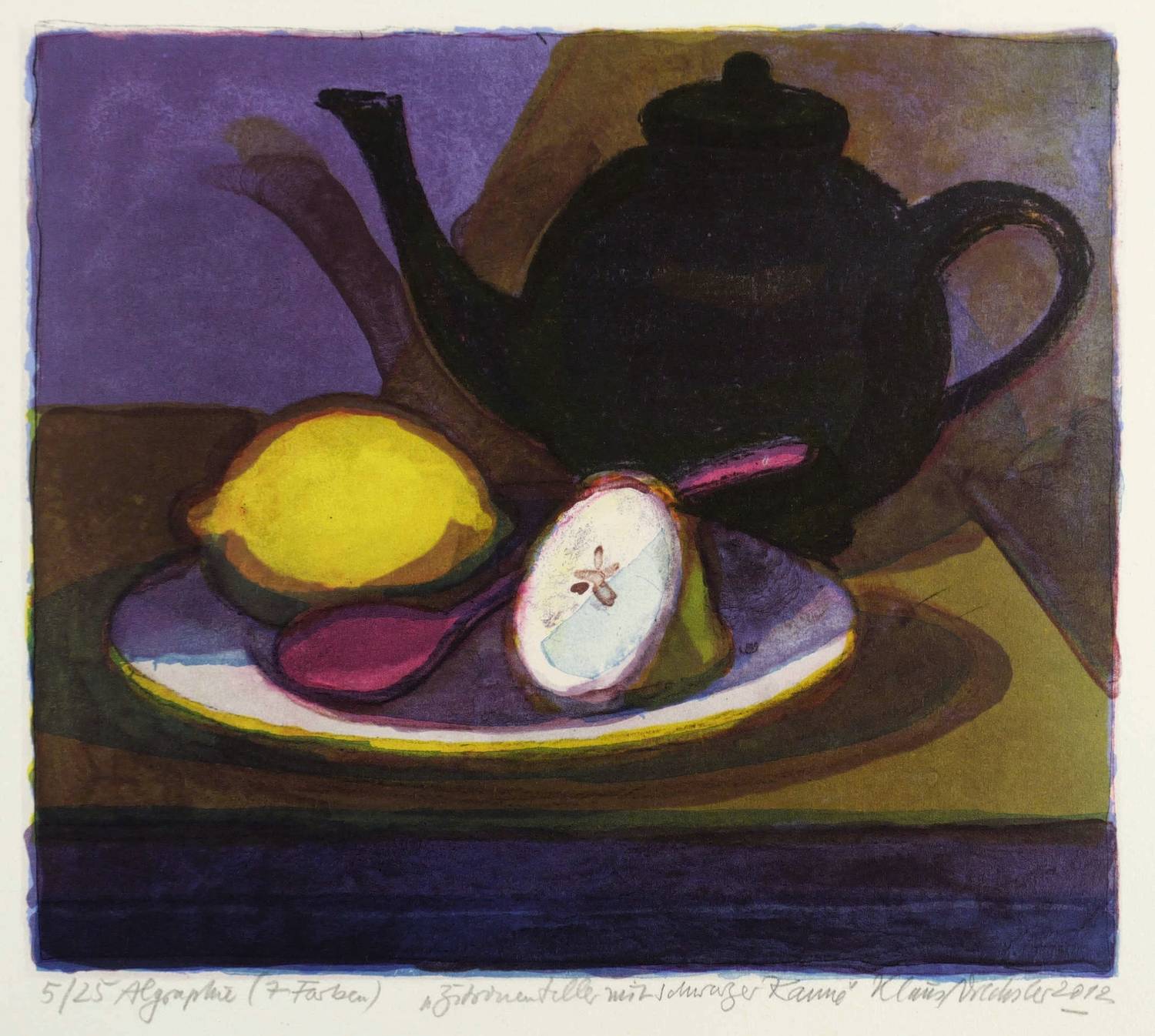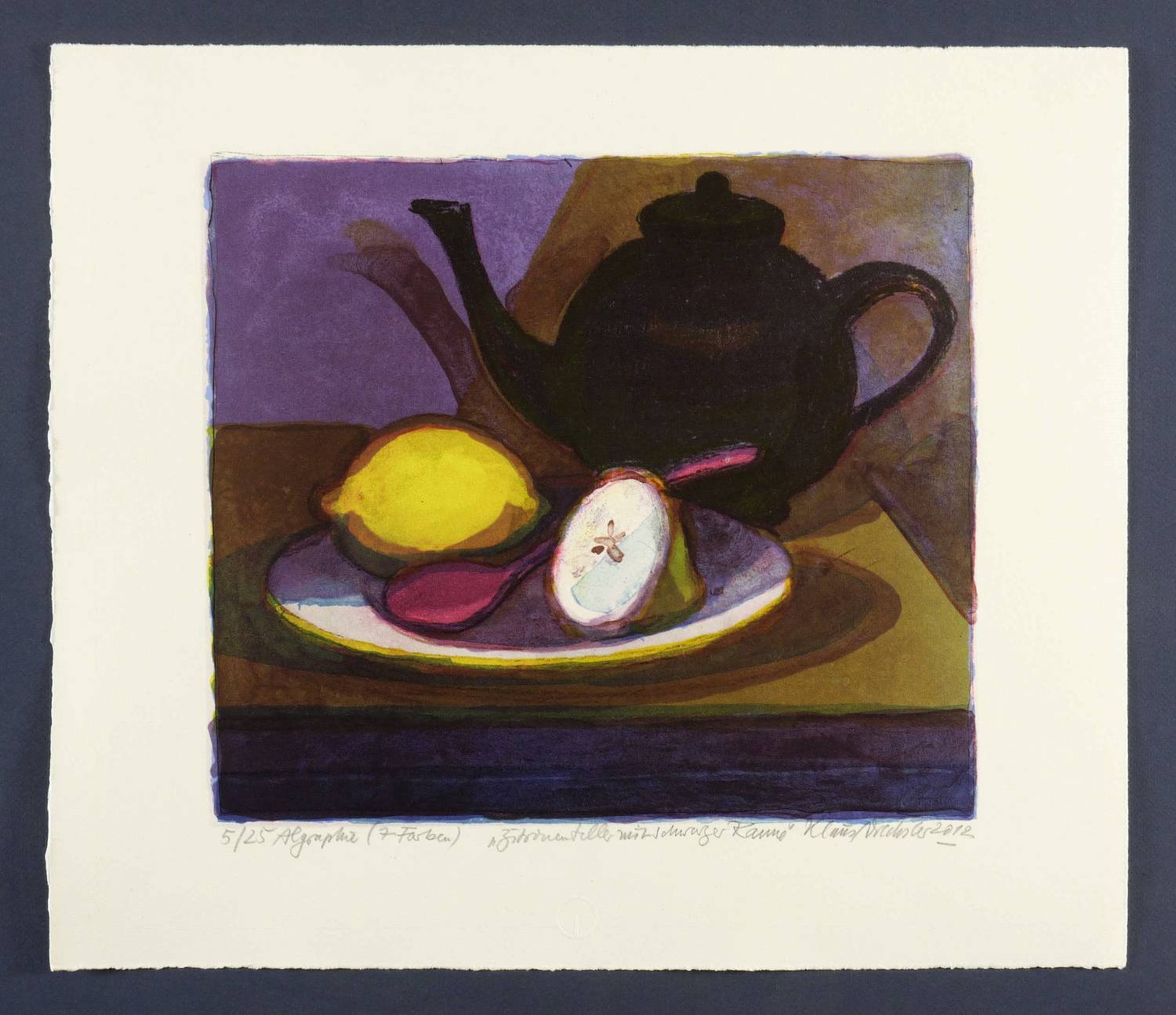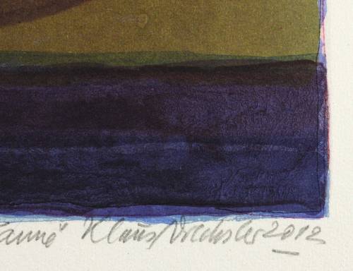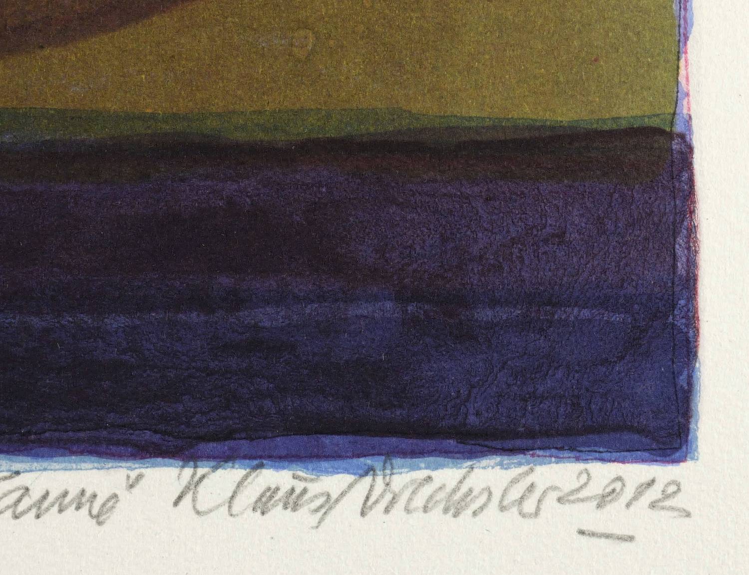 2012. Farbalgrafie / Pinselalgrafie, in 7 Farben, auf schwerem hellchamois Bütten. – Originale Künstlergrafik, von Klaus Drechsler. – Auflage Exemplar Nr. 5/25. – 29,5 x 34,0 cm (Darstellung), 41 x 48 cm (Blatt).