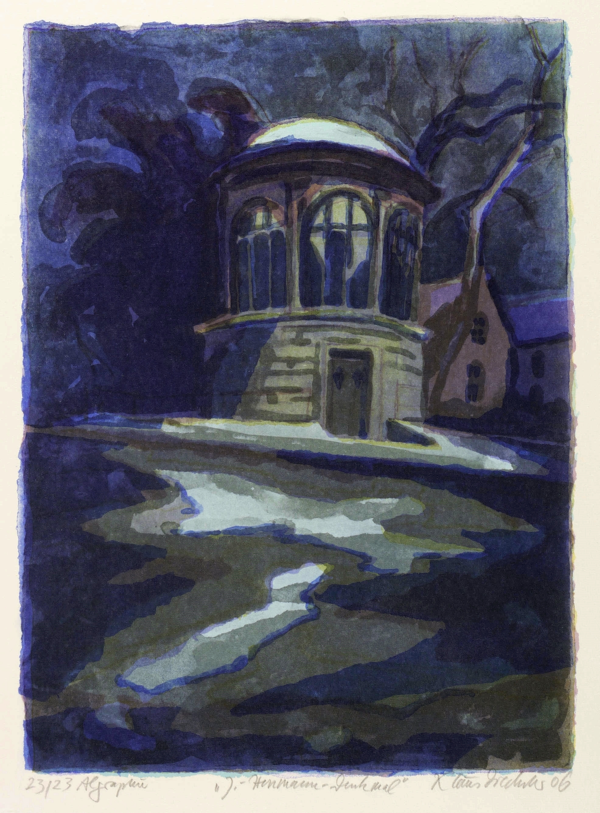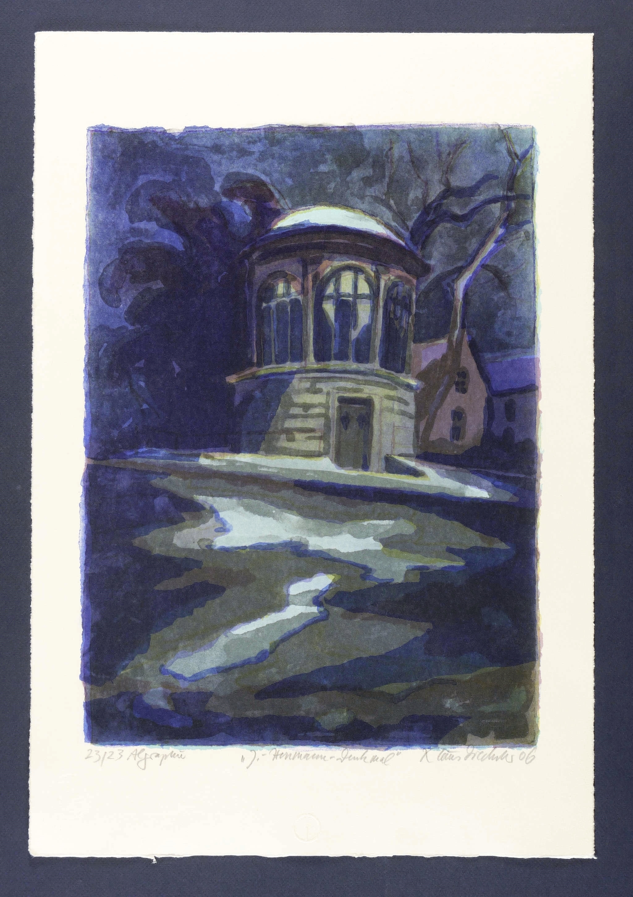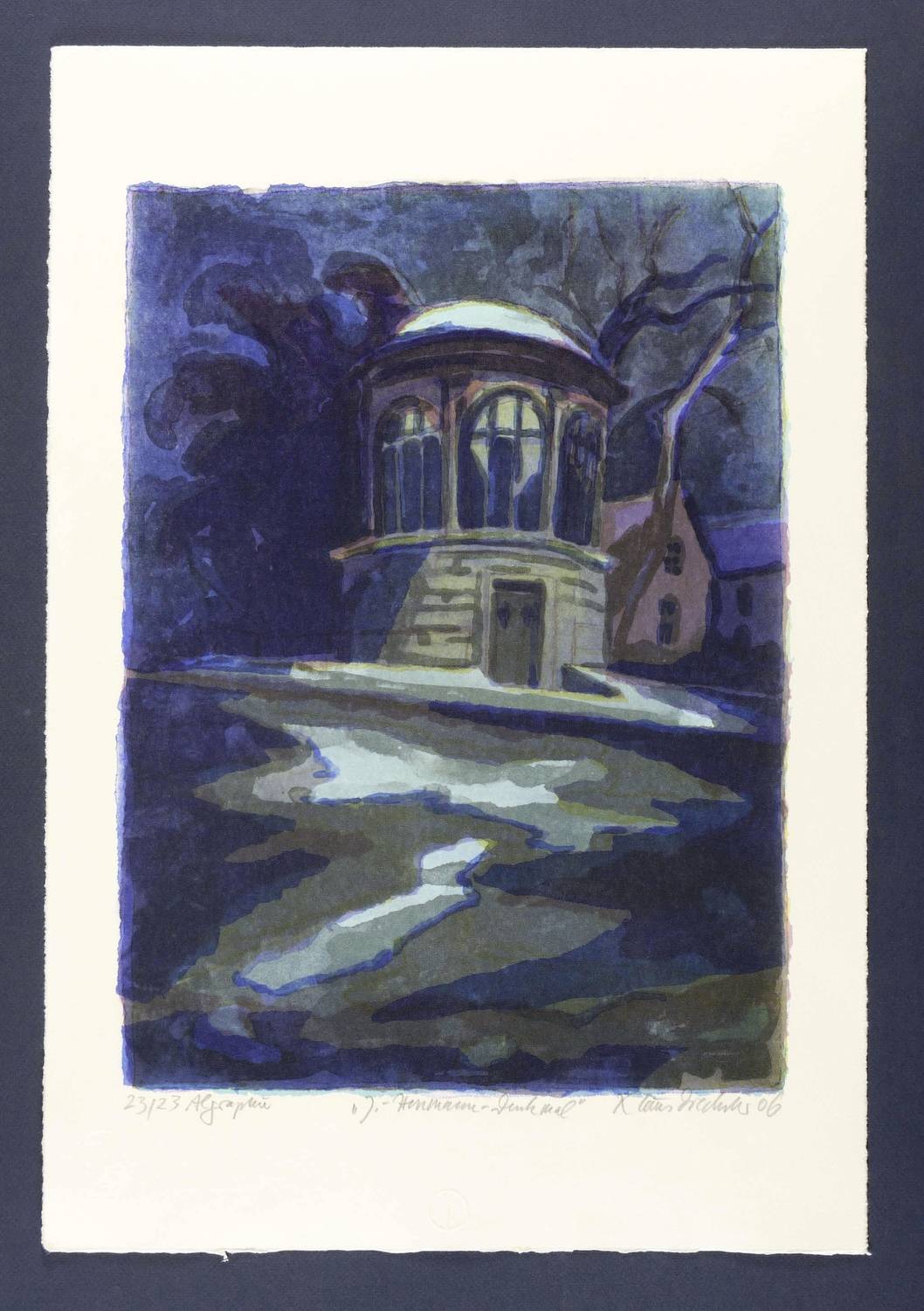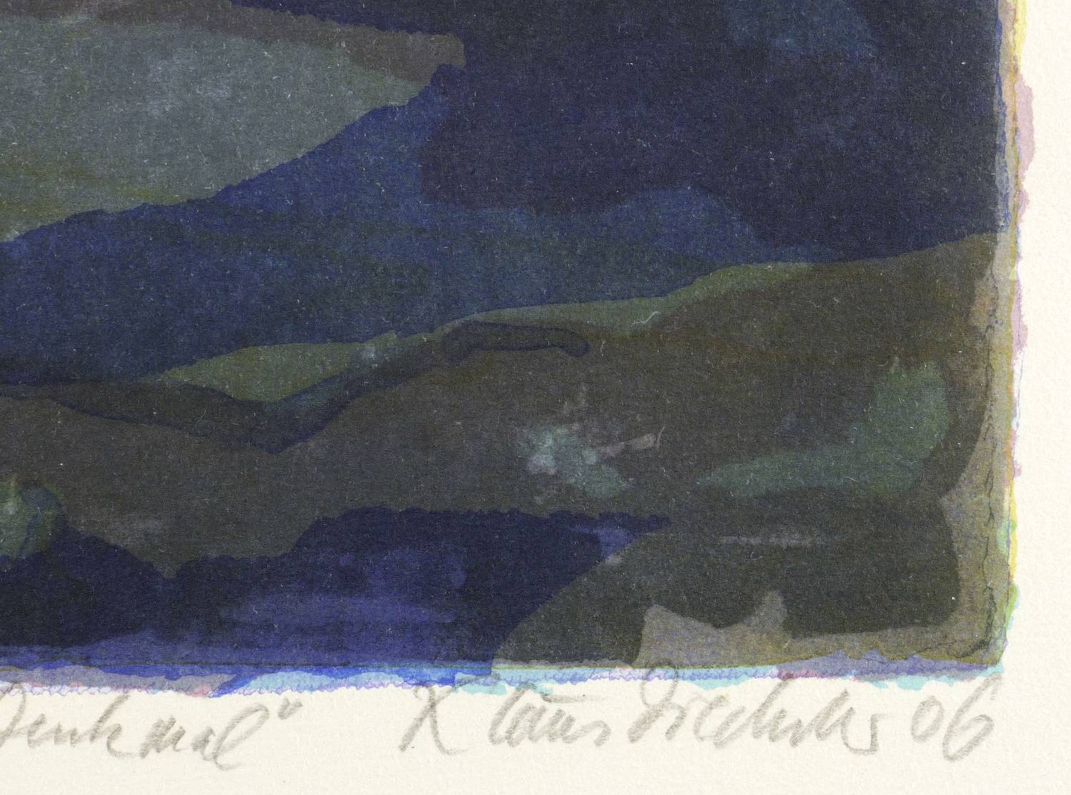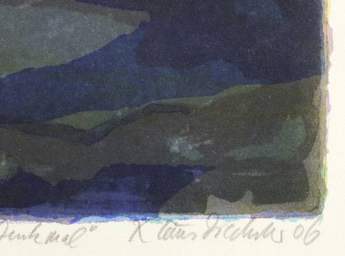 2006. Farbalgrafie / Pinselalgrafie, in 6 Farben, auf schwerem hellchamois Hahnemühle-Bütten. – Originale Künstlergrafik, von Klaus Drechsler. – Auflage Exemplar Nr. 23/23. – 42,5 x 31,0 cm (Darstellung), 56 x 38 cm (Blatt).