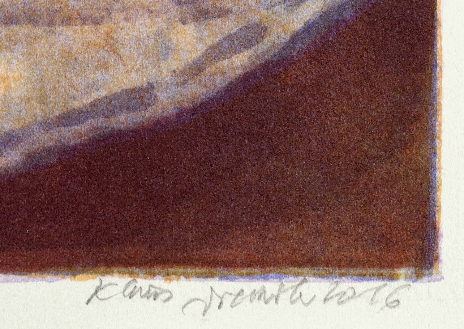 2016. Farbalgrafie / Pinselalgrafie, in 7 Farben, auf schwerem weißem Hahnemühle-Bütten. – Originale Künstlergrafik, von Klaus Drechsler. – Auflage Exemplar Nr. 1/20. – 33,5 x 49,5 cm (Darstellung / Druckbild), 37,5 x 54 cm (Blatt).