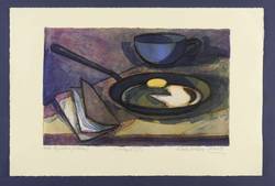 2013. Farbalgrafie / Pinselalgrafie, in 7 Farben, auf schwerem gelbem Hahnemühle-Bütten. – Originale Künstlergrafik, von Klaus Drechsler. – Auflage Exemplar Nr. 14/20. – 28,7 x 45,5 cm (Darstellung / Druckbild), 41 x 61,5 cm (Blatt).