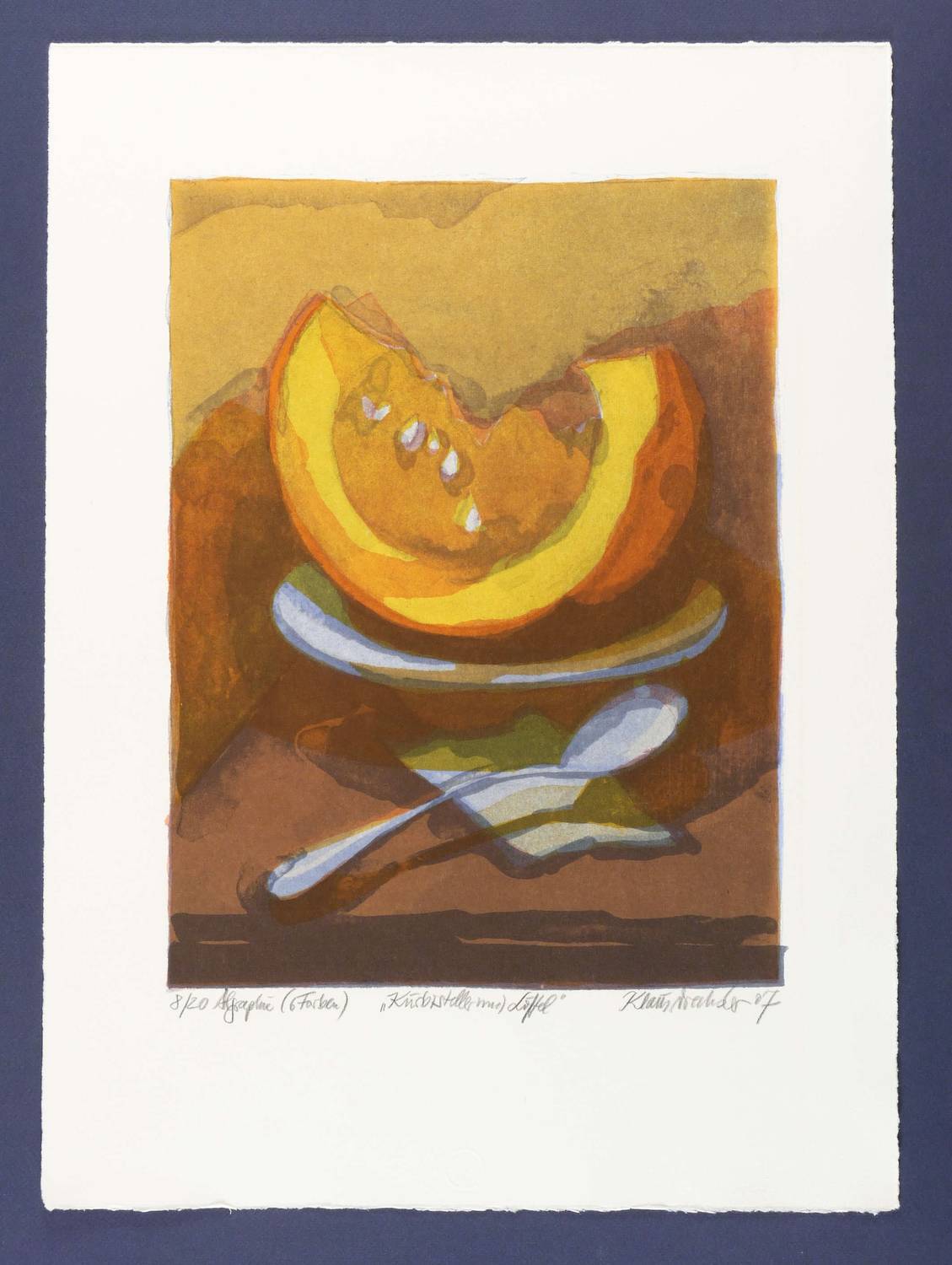 2007. Farbalgrafie / Pinselalgrafie, in 6 Farben, auf schwerem hellchamois Bütten. – Originale Künstlergrafik, von Klaus Drechsler. – Auflage Exemplar Nr. 8/20. – 37,5 x 28,5 cm (Darstellung), 54 x 39,5 cm (Blatt).