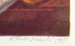 2016. Farbalgrafie / Pinselalgrafie, in 7 Farben, auf schwerem hellchamois Bütten. – Originale Künstlergrafik, von Klaus Drechsler. – Auflage Exemplar Nr. 19/20. – 34,0 x 53,4 cm (Darstellung / Druckbild), 41,5 x 57,5 cm (Blatt).
