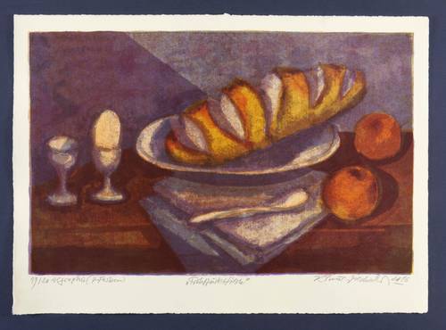 Rechts unten in Bleistift signiert und datiert. Links Auflagen- und Technikbezeichnung. Mittig Titel. Trockenstempel der Grafikwerkstatt Dresden. – Tadellos. Sehr guter Zustand.
