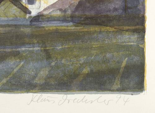1994. Farbalgrafie / Pinselalgrafie, in 5 Farben, auf weißem Velinkarton. – Originale Künstlergrafik, von Klaus Drechsler. – Auflage Exemplar Nr. 7/20. – 38,1 x 54,5 cm (Darstellung / Druckbild), 45 x 59 cm (Blatt).