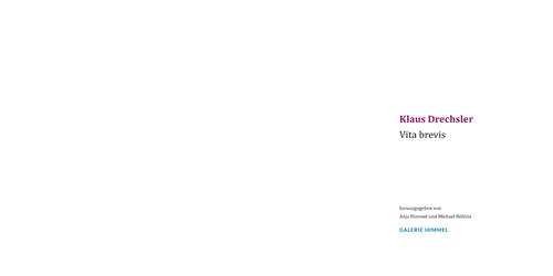 8°, Broschur, 138 S., 56 Werk-Abb., 2 fotogr. Portraits. - Katalog zur Jubiläumsausstellung anlässlich des 80. Geburtstages ″Klaus Drechsler - Vita brevis″ in der Galerie Himmel in Dresden, 22.5.-18.7.2020. - Geleitwort von Anja Himmel und Michael Böhlitz, Texte von Frank Oehmichen, Anke Fröhlich-Schauseil und Jördis Lademann. Ausführlicher Katalogteil mit wesentlichen Arbeiten des Künstlers. - Erstausgabe, neu.