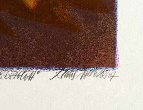 2007. Farbalgrafie / Pinselalgrafie, in 6 Farben, auf schwerem hellchamois Hahnemühle. – Originale Künstlergrafik, von Klaus Drechsler. – Auflage Exemplar Nr. 12/20. – 38,0 x 29,3 cm (Darstellung), 54 x 40 cm (Blatt).