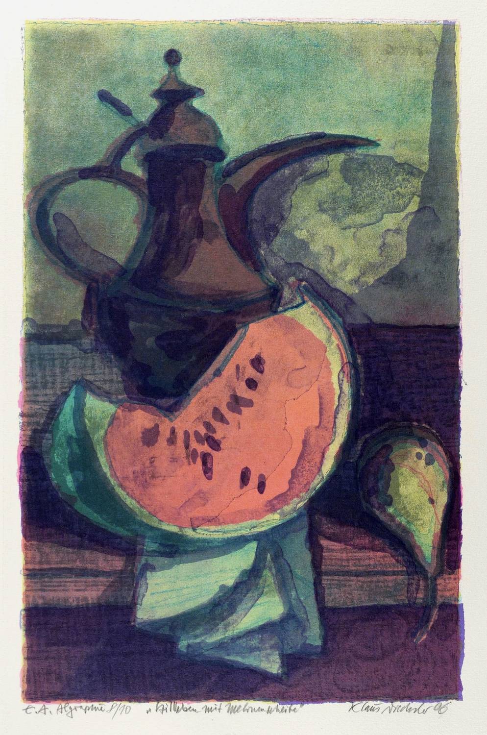 Klaus Drechsler (*1940 Ober-Dammer, lebt und arbeitet in Dresden-Wachwitz). Deutscher Maler, Aquarellmaler und Grafiker. 1957-60 Besuch der Arbeiter-und-Bauernfakultät an der Hochschule für Bildende Künste Dresden (HfBK). Langjähriger Austausch mit Hans Jüchser. 1961–66 Studium an der Kunstakademie bei Paul Michaelis. Seit 1969 freiberuflich tätig. Seit 1980 Beschäftigung mit Farbgrafik. Seit 1990 Lehrauftrag an der TU Dresden. 1994–2002 Lehrauftrag an der Dresdner Kunstakademie. 2001 Kulturpreis der Stadt Pirna und der Sparkasse Freital-Pirna.