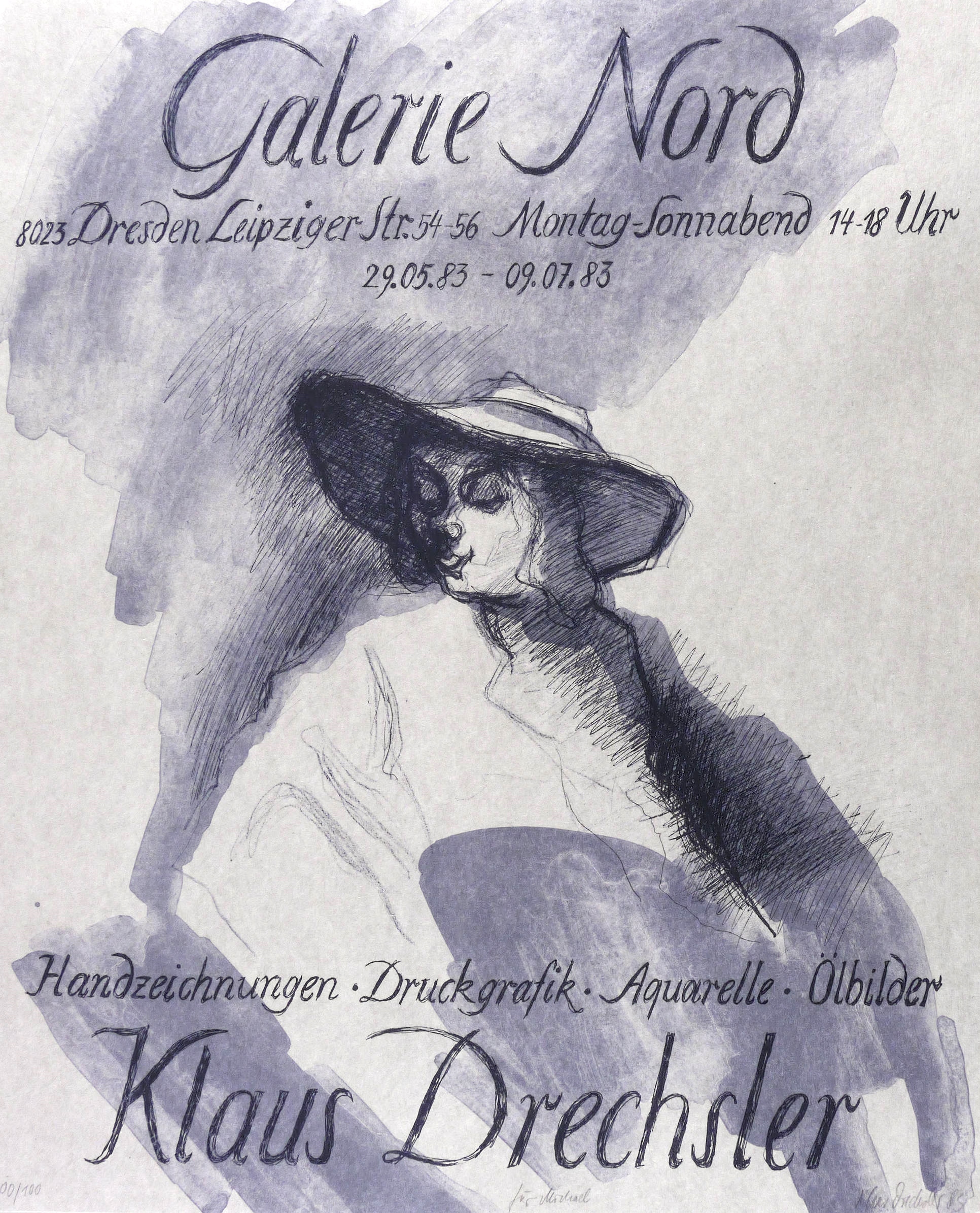 Drechsler, Klaus. – Ausstellungsplakat Galerie Nord Dresden. – „Dame mit Hut”.