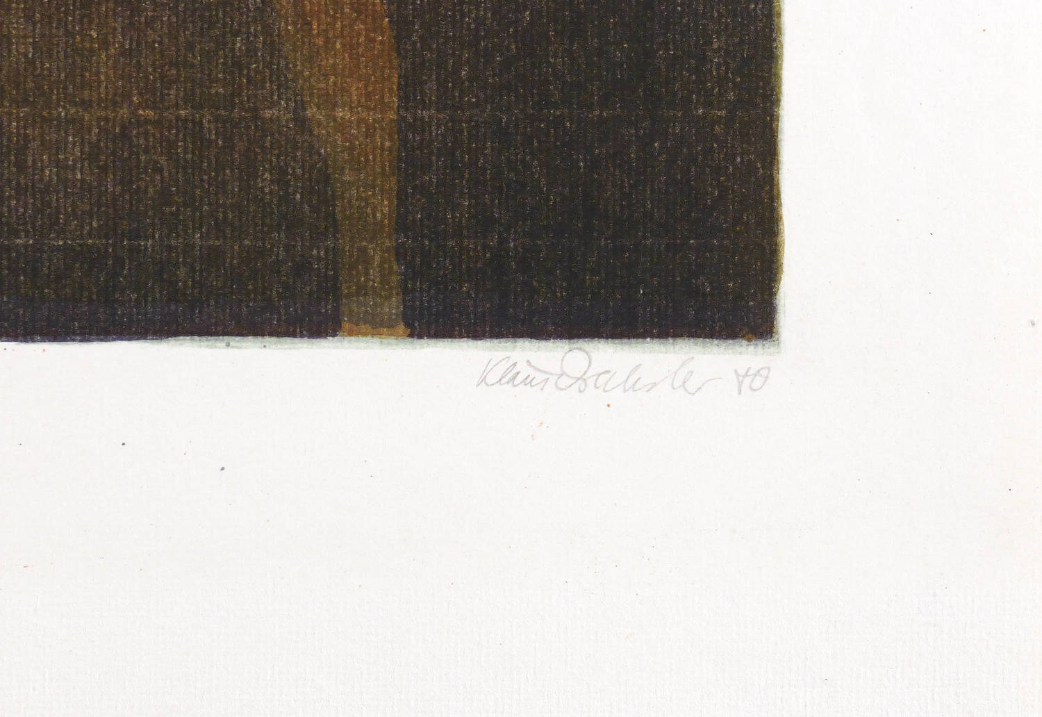 Rechts unten in Bleistift signiert und datiert: ″Klaus Drechsler 80″. Links Technikbezeichnung: ″Tuschlitho″. – Provenienz: Steindrucker Michael Wackwitz, Dresden und Stuttgart. – Sehr guter Zustand.
