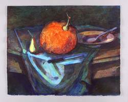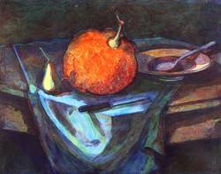 Drechsler, Klaus. – „Tischstilllleben mit Kürbis”.