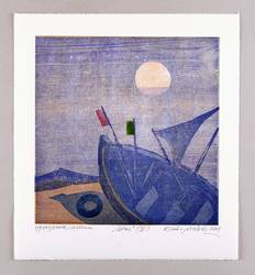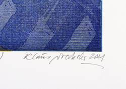 Rechts unten in Bleistift signiert und datiert: ″Klaus Drechsler 2021″. Links Auflagen- und Technikbezeichnung: ″1/9 Holzschnitt, Schablonen″. Mittig Titel: ″Strand (III)″. Trockenstempel der Grafikwerkstatt Dresden. – Sehr guter Zustand.