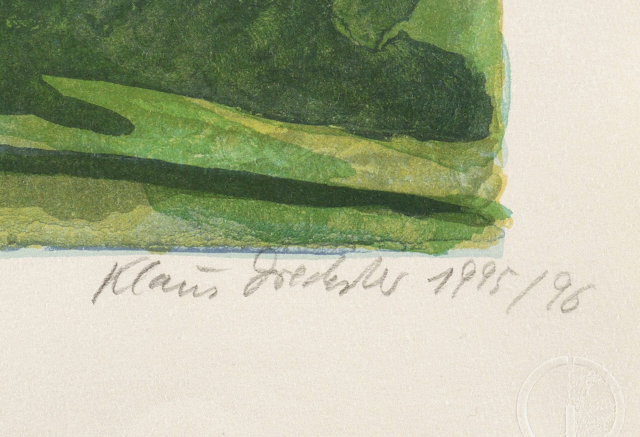1995/1996. Farbalgrafie / Pinselalgrafie, in 5 Farben, auf hellchamois Velin. – Originale Künstlergrafik, von Klaus Drechsler. – Auflage Exemplar Nr. 7/25. – 31,0 x 50,5 cm (Darstellung / Druckbild), 39 x 57 cm (Blatt).