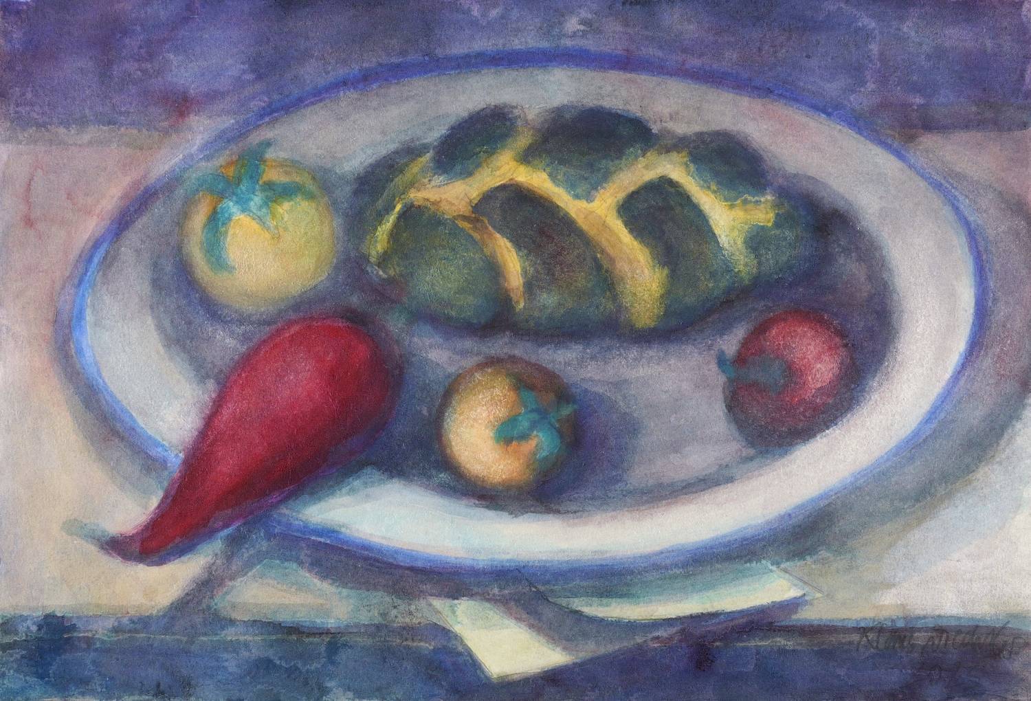 2023. Aquarell, auf Velinkarton. – Originale Künstlergrafik, von Klaus Drechsler. – Unikat. – 30,5 x 44,5 cm (Darstellung / Blatt).