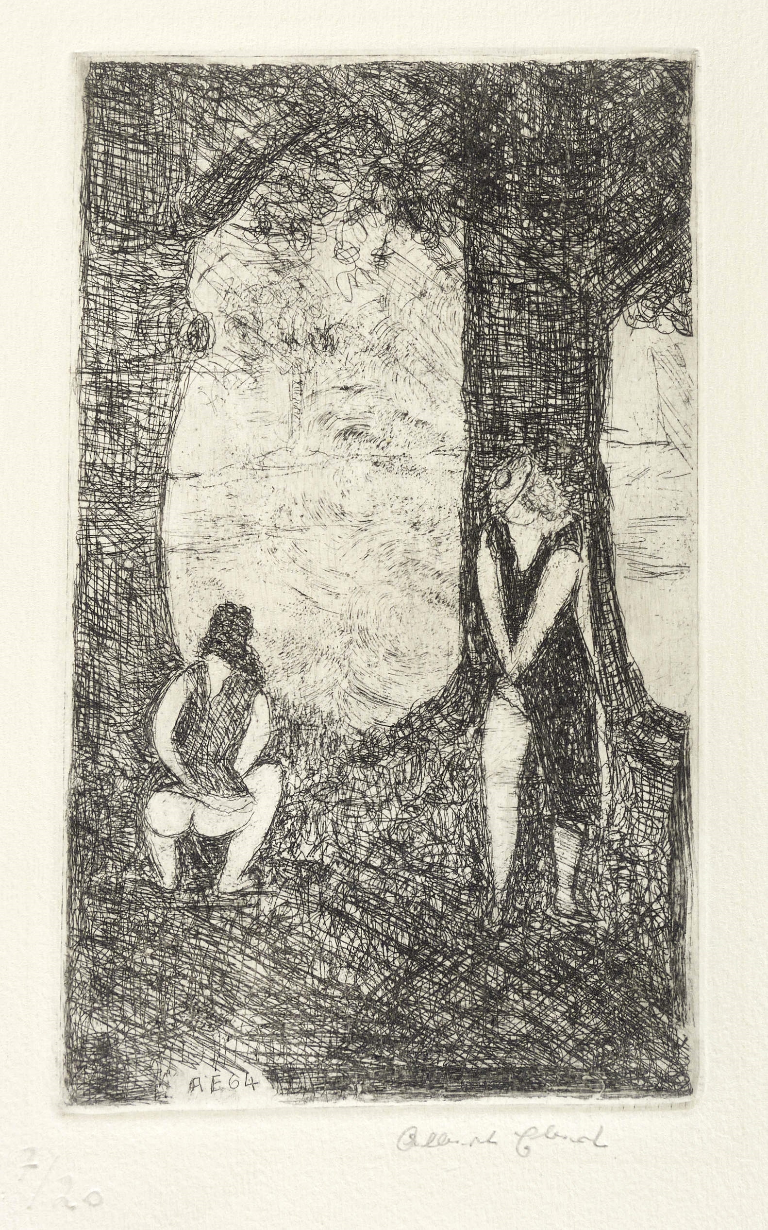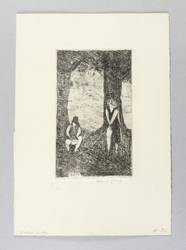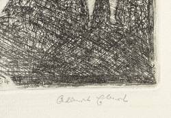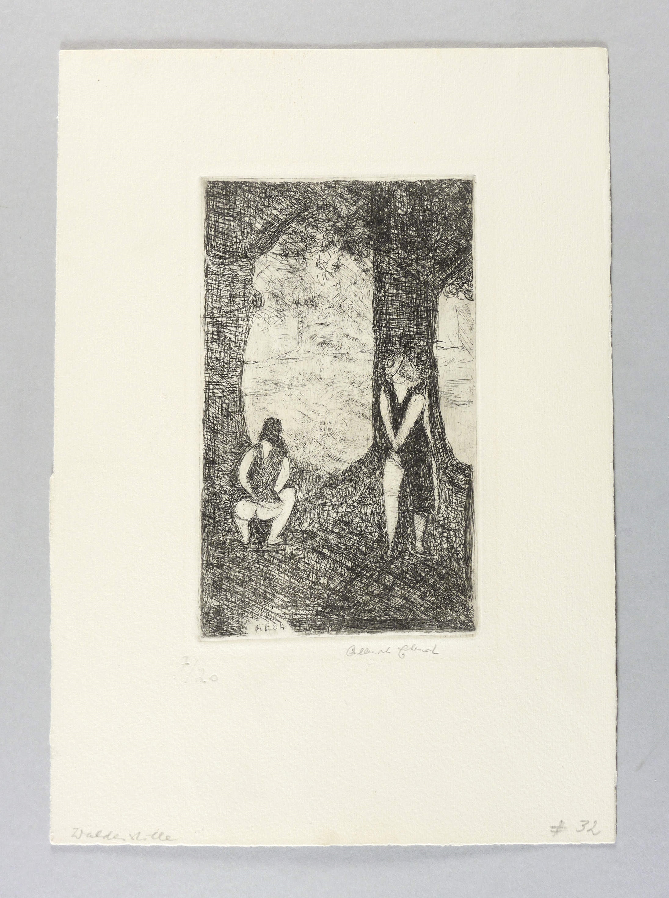 1964. Radierung / Kaltnadel, in Schwarz, auf hellgelbem Velin. – Originale Künstlergrafik, von Albert Ebert. – Auflage Exemplar Nr. 7/20. – 15,8 x 9,5 cm (Darstellung / Platte), 27 x 19 cm (Blatt).