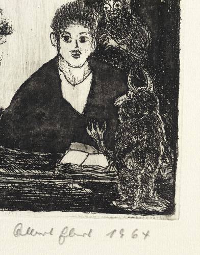 1964. Radierung / Strichätzung & Aquatinta, in Schwarz, auf leichtem hellgelbem Velin. – Originale Künstlergrafik, von Albert Ebert. – Auflage Exemplar Nr. 19/20. – 11,9 x 9,3 cm (Darstellung / Platte), 27 x 19 cm (Blatt).